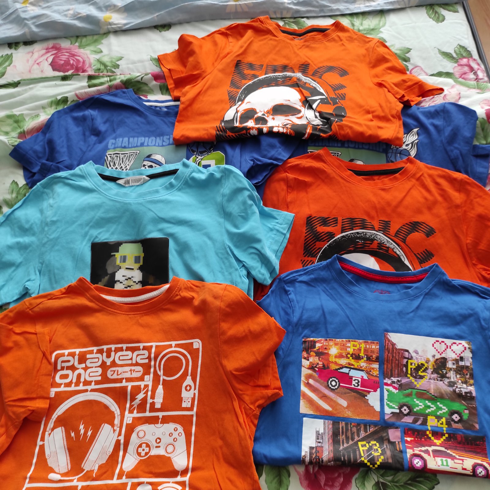 Tričko F&F , bledo modré H&M, veľkosť od 10/11, 12/13 rokov, tričká sú vo veľmi dobrom stave obrázky nie sú popraskané niektoré možno raz oblečené, vhodné do školy , spolu