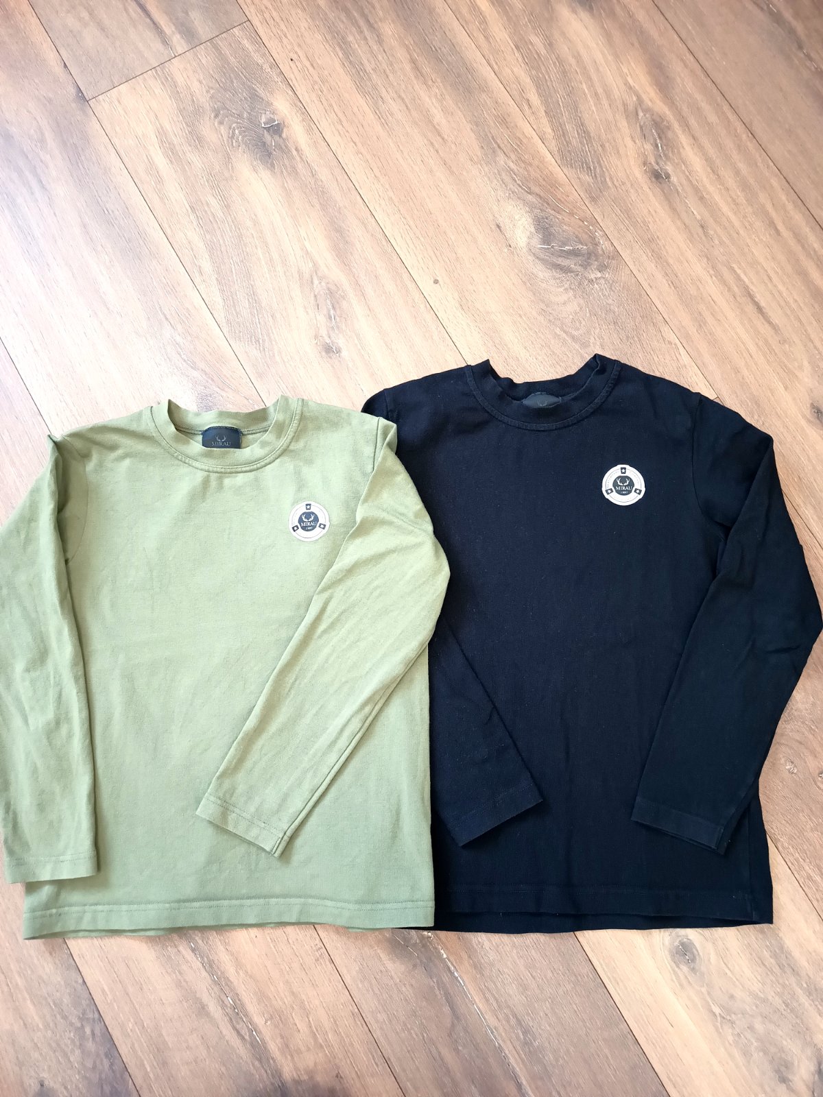 2 skvelé kvalitné tričká s dlhým rukávom (čierne a kaki zelené) slovenskej značky Mirau. Syn ich nosil dlhšie,sedia aj na 134. Su v peknom nosenom stave,farba miestami od prania môže byť bledsia,nápisy sú nepopukane. Dĺžka cca 46-47 cm. Predaj aj cena je spolu za obidve tricka.