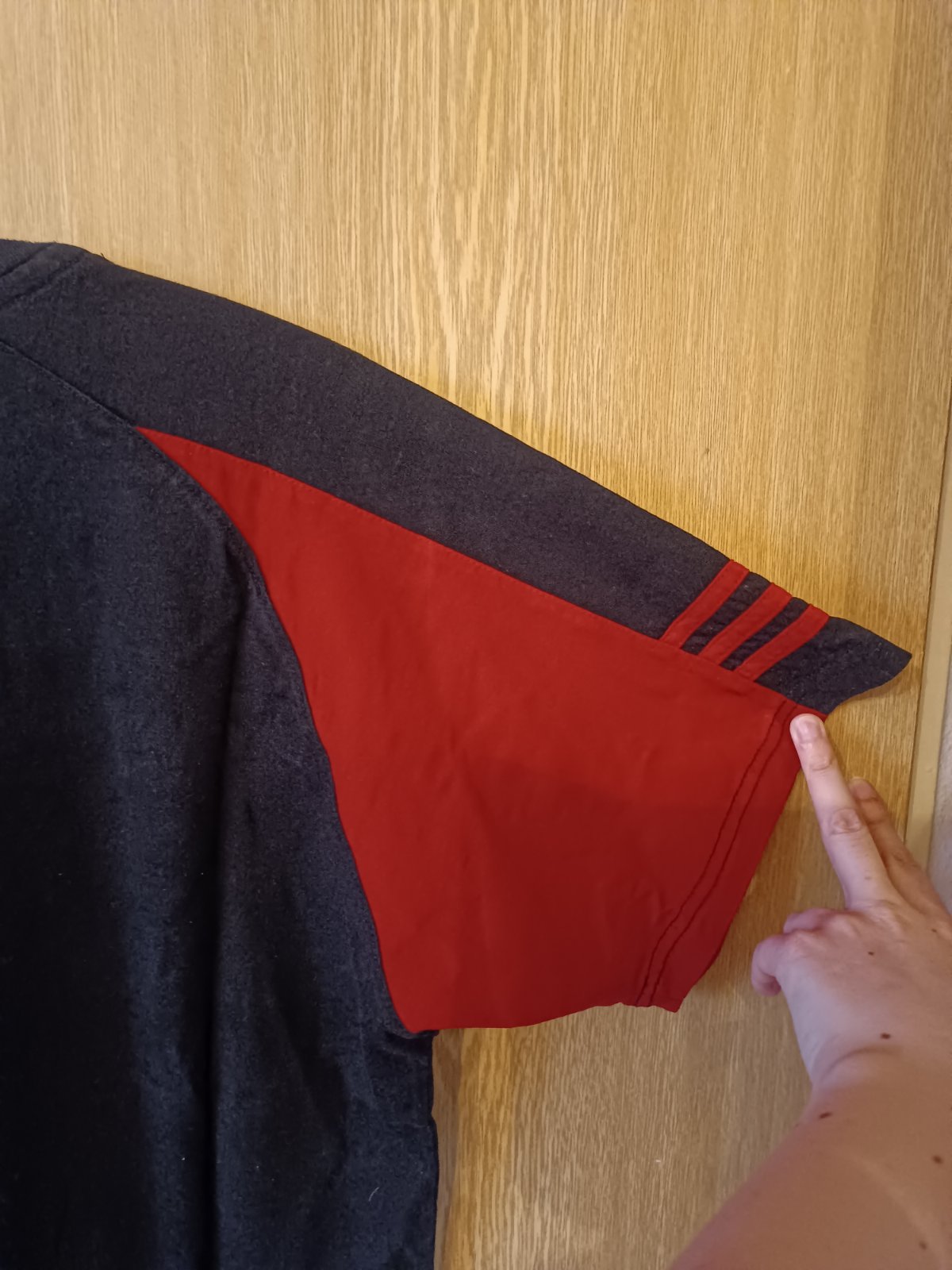 Predám športové tričko značky Adidas v kombinácii čiernej a červenej farby.