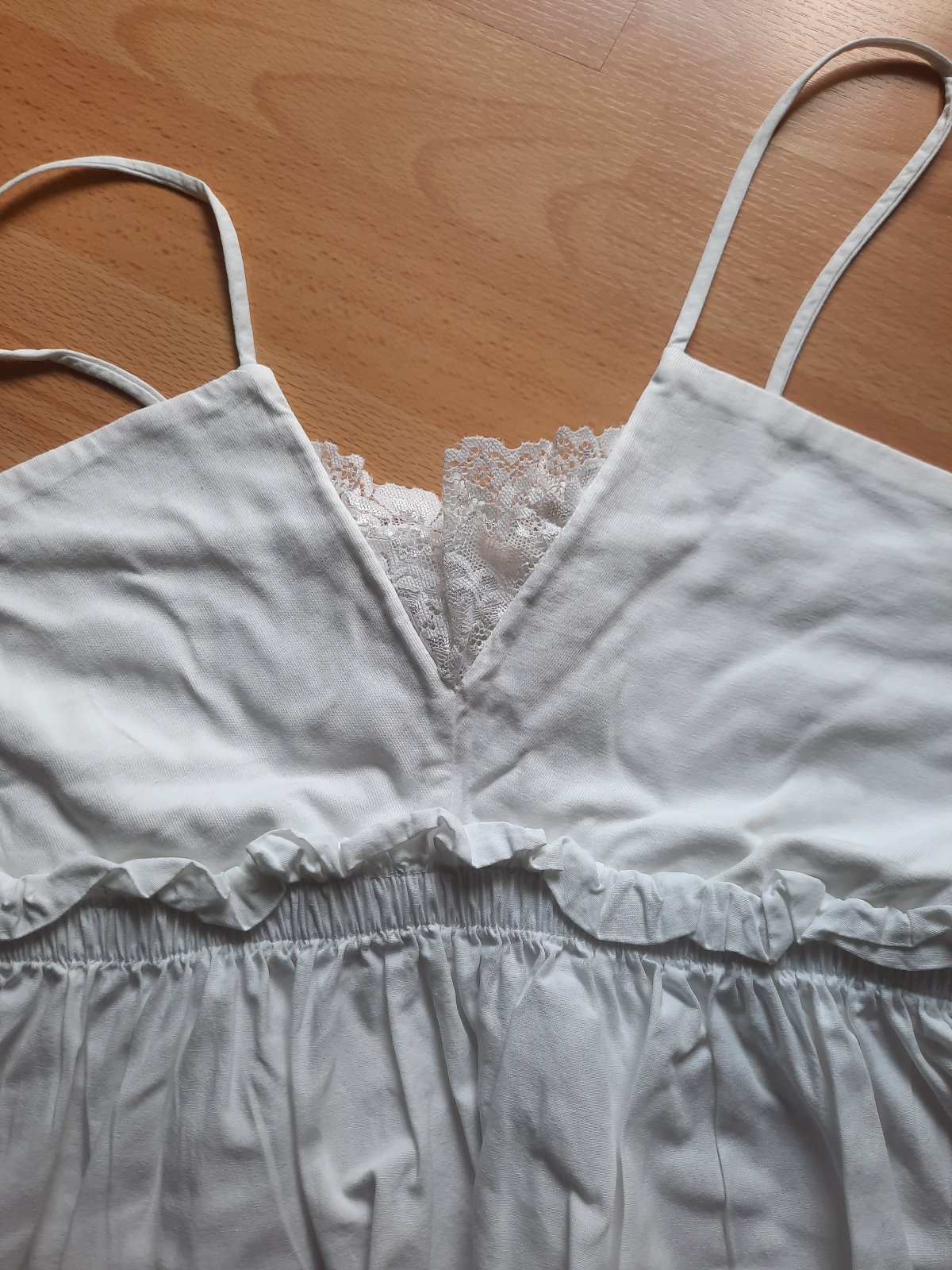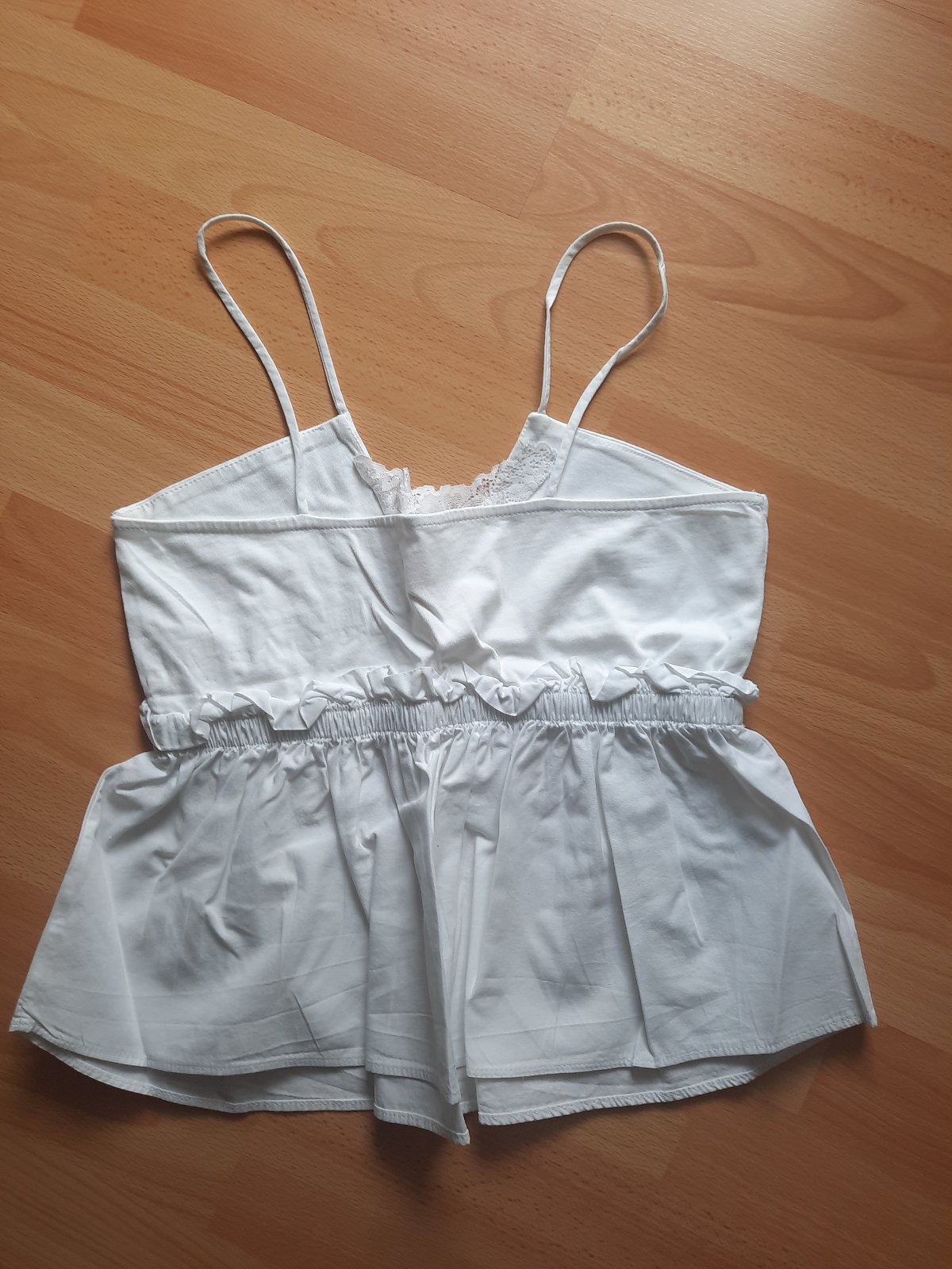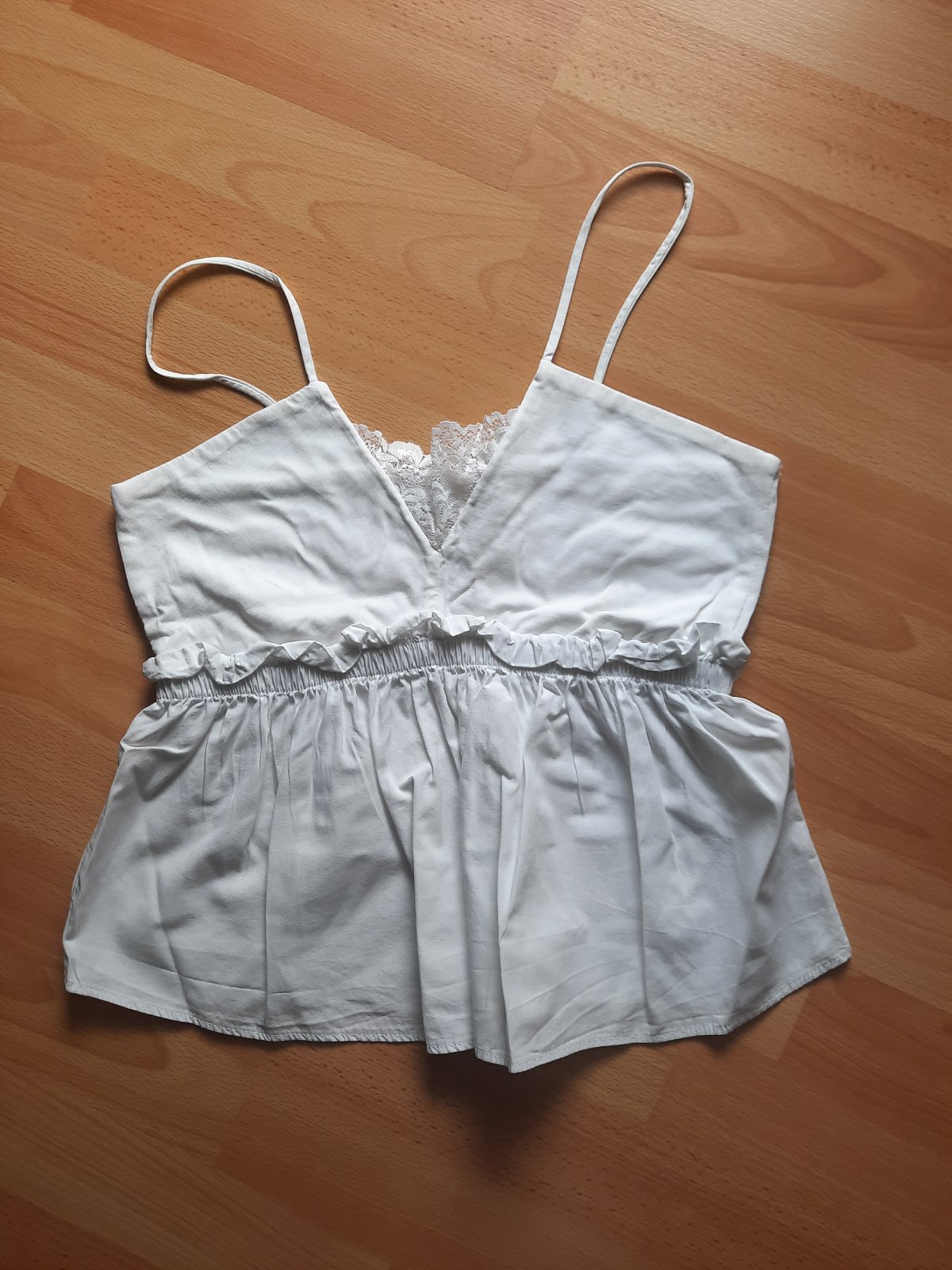 Predám pekný a zvláštne strihaný top na ramienka. Pod prsiami je prestrihnutý a na gumu. Vrchná časť nad gumou je elastický úplet s čipkou vo výstrihu. Spodná časť pod gumou je blúzkovina . Top má A-čkový strih. Je ako nový, v super stave.