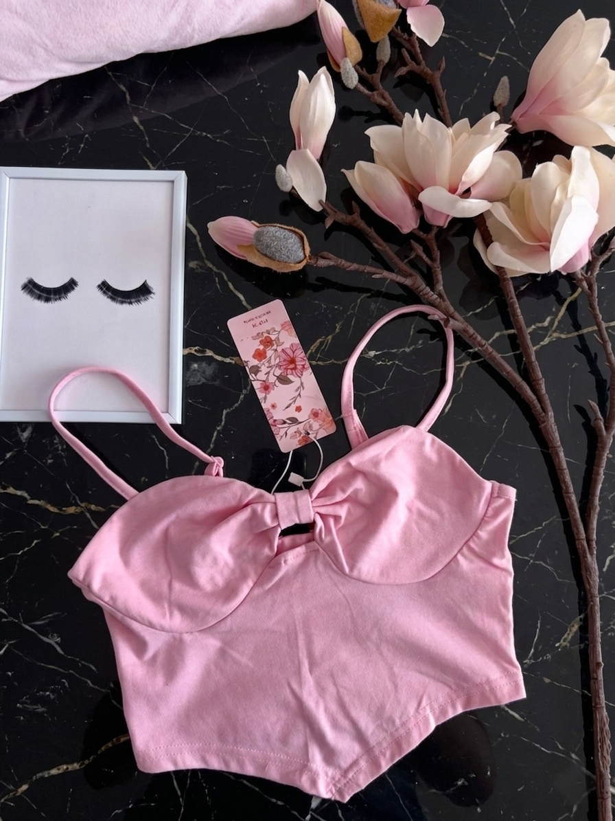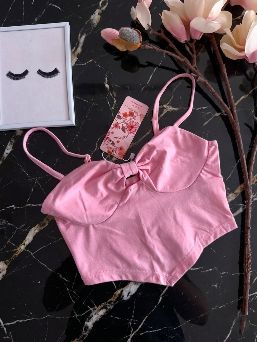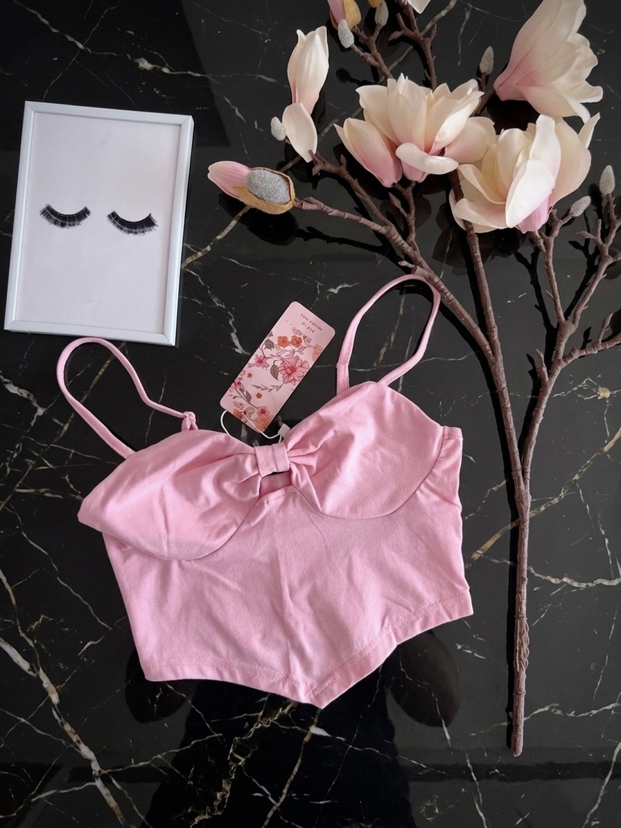 Nový crop top s visačkou, cukríkovo ružová farba, ramienka nastaviteľné.
