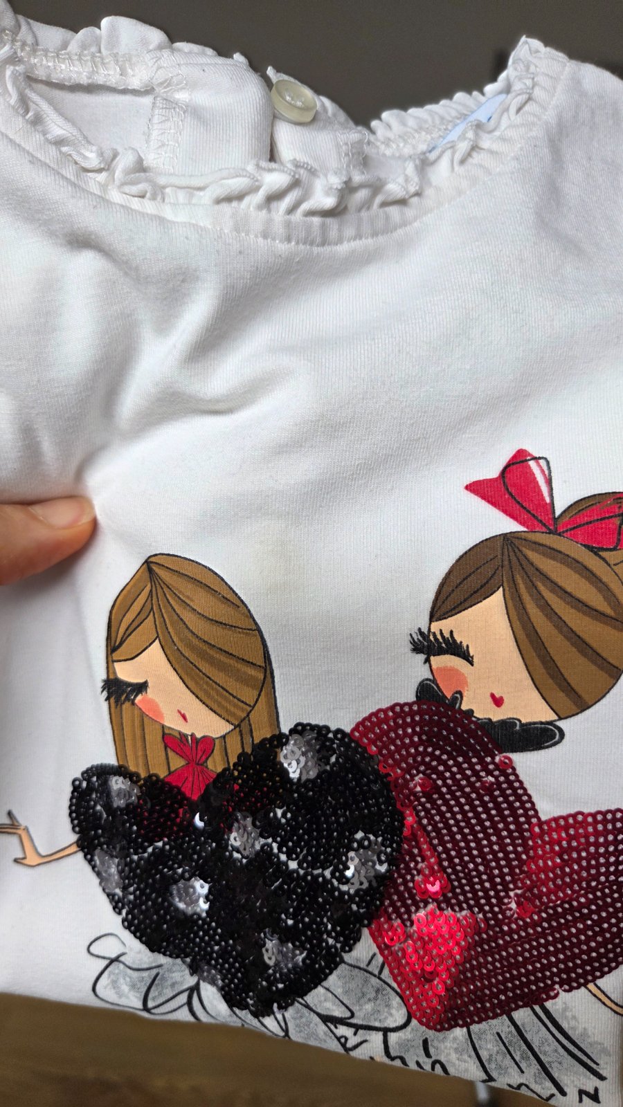 Oblečené max 2x, pri fotení som si všimla fliačik (medzi hlavami dievčat) viď foto, neskúšala som zapierať, preto nižšia cena.