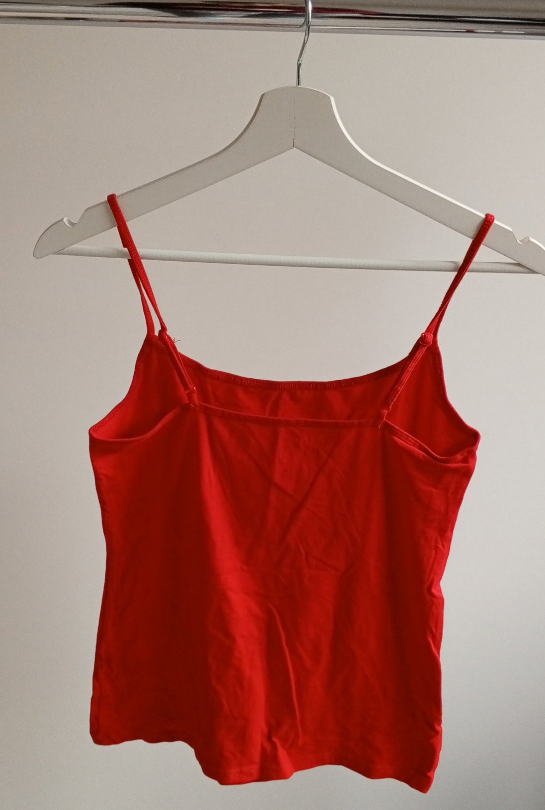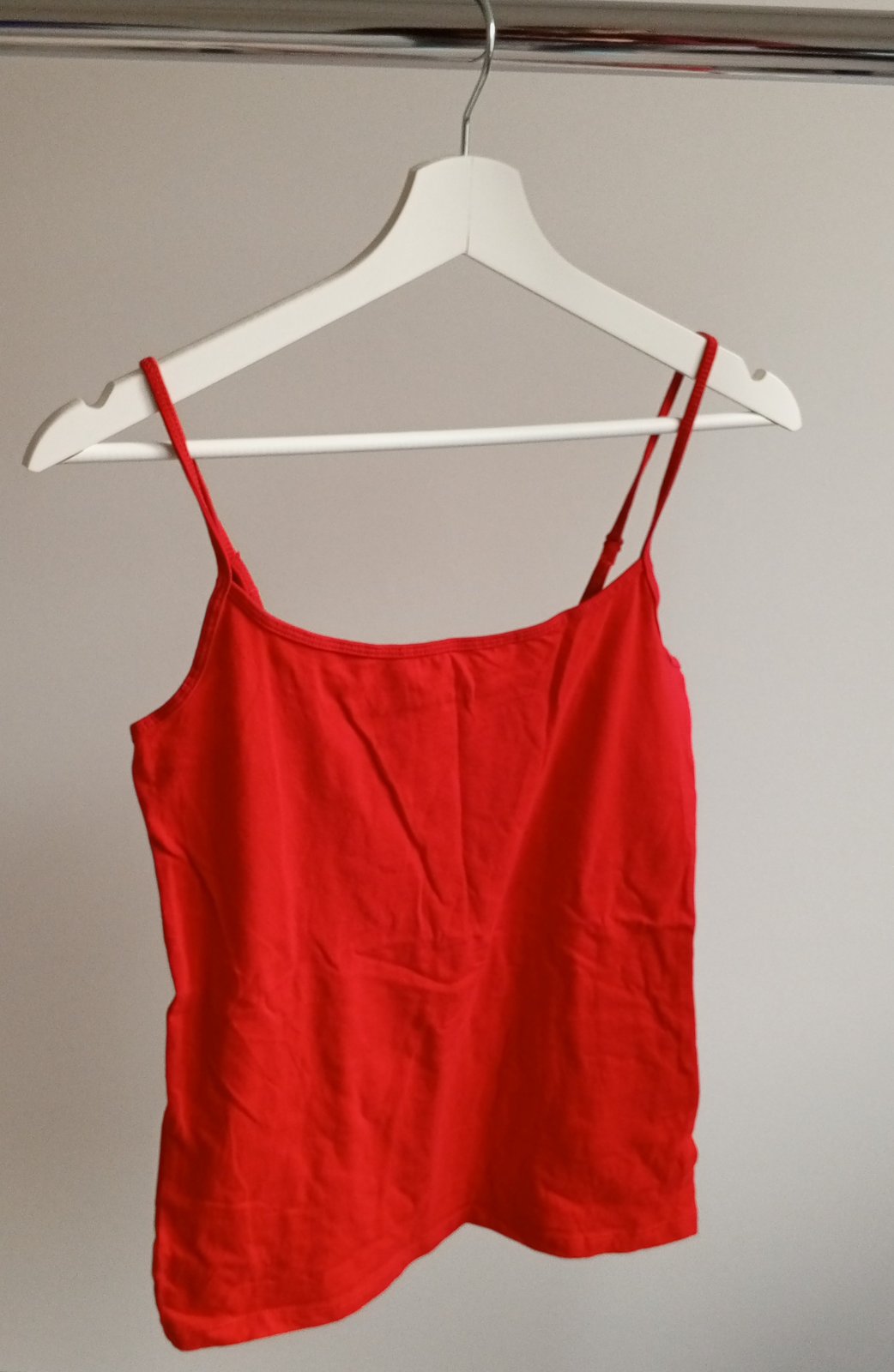 dámsky svetlo červený elastický top, príjemný kvalitný materiál, zloženie: 95 % bavlna, 5 % elastan, stav: výborný, málo nosený, uvádzaná veľkosť na štítku 12,40, zodpovedá veľkosti S, premerajte ...