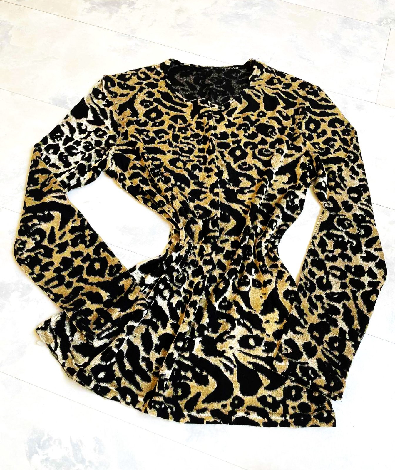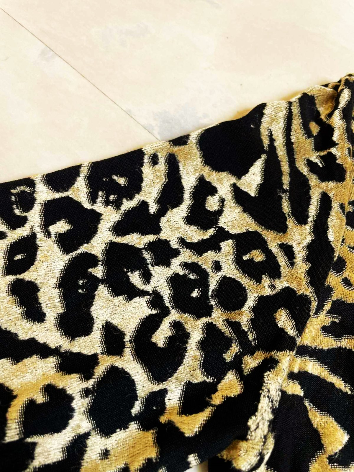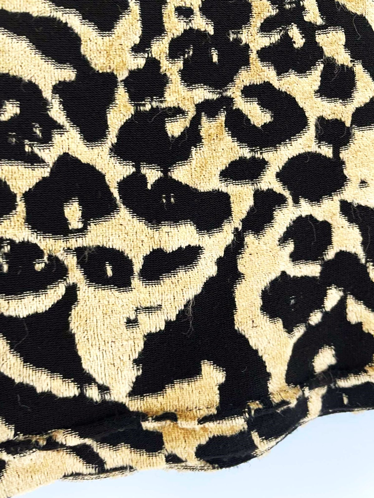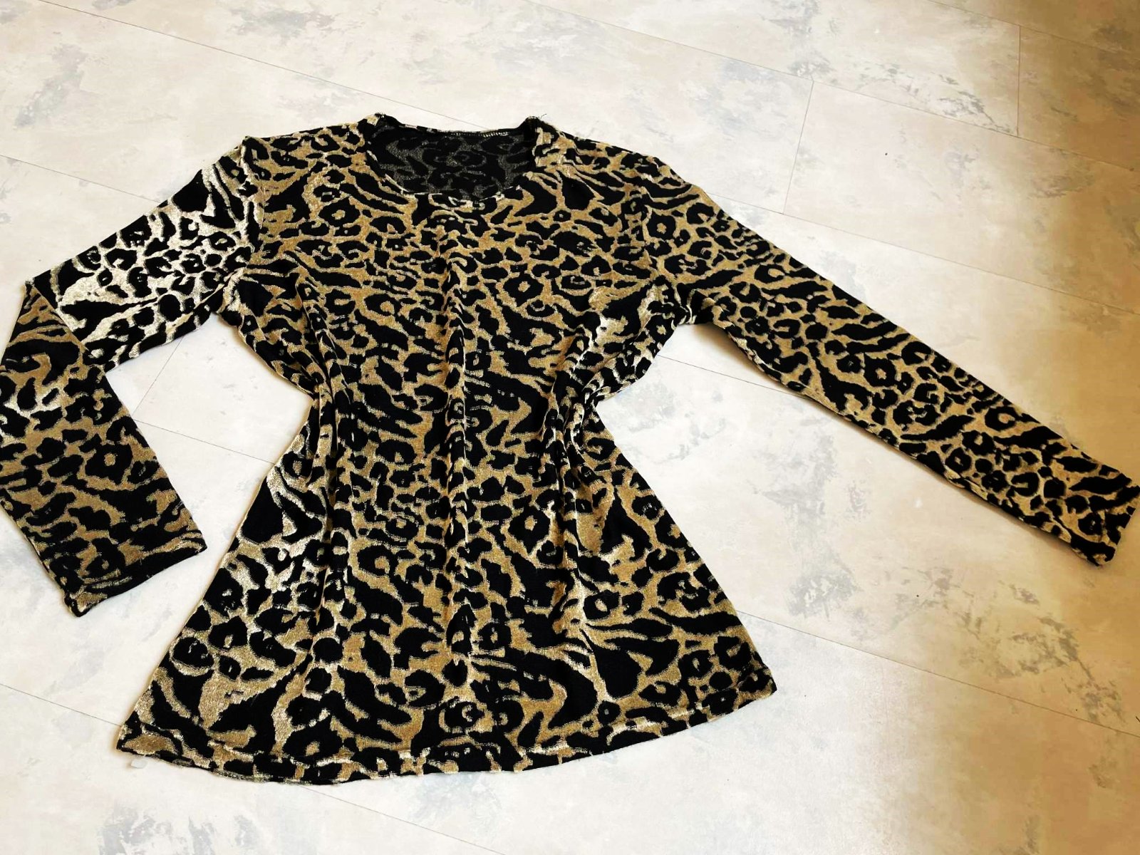 tenké tričko - plastický svetlohnedo - zlatý vzor - jemný vystupujúci zamat s nízkym vlasom v zlatokrémovej farbe na čiernom podklade,hodí sa aj na spoločenské podujatia,krásne vynikne plastická kresba,super aj do kostýmov,ale nielen,dlžka = 60 cm,šírka = 44/45 x 2 cm - poddá sa, ramená = 13 cm, rukáv= 55 cm