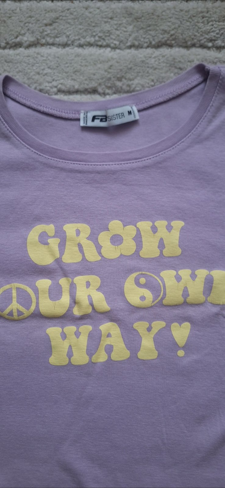 Fialové tričko s krátkym rukávom, v prednej časti s nápisom, vo veľkosti S. V zachovalom stave, bez poškodení. Cena je 1,50 + poštovné.