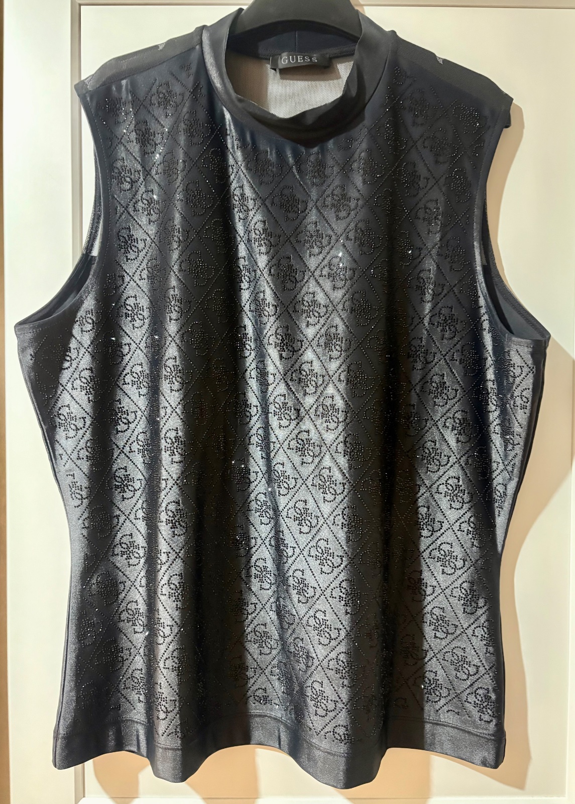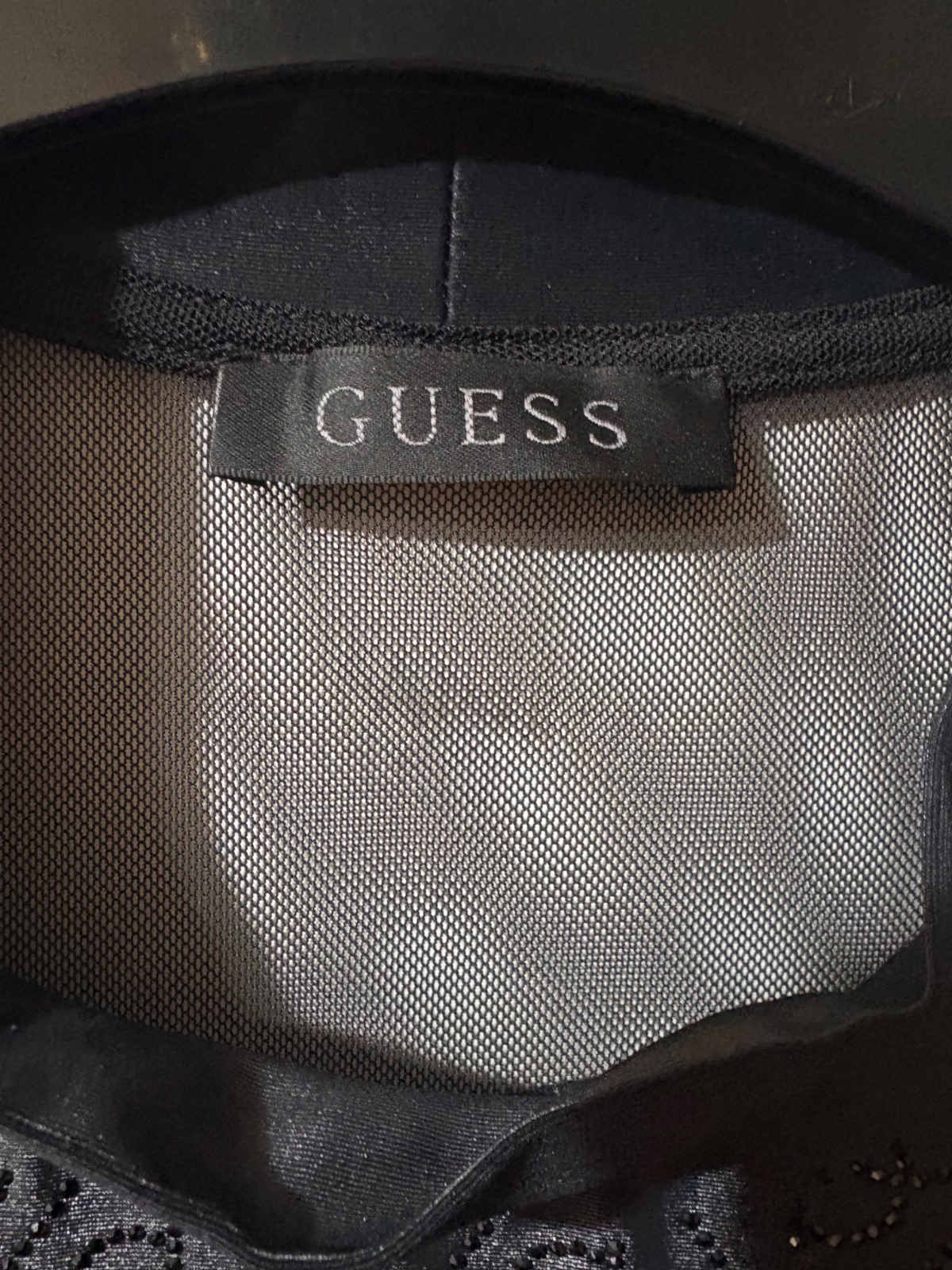 Krásny luxusne pôsobiaci top Guess originál,Veľ. XL/44 raz vzatý.Vykladaný malinkými kamienkami.Top stav.Vhodný aj na slávnosť.