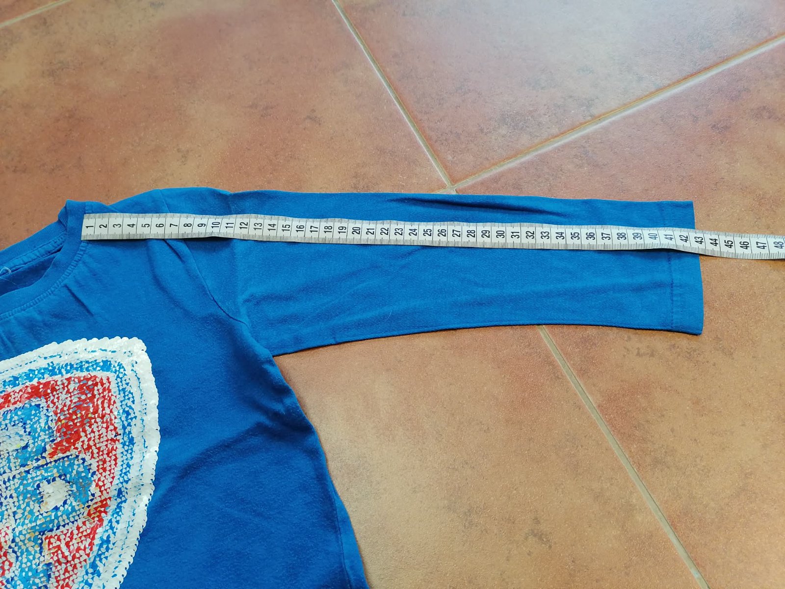 Predám zachovalé tričko, visačky sme žial museli odstrihnúť - veľ. odhadom 110 (vid rozmery na foto). Na bavlne vidiet jemné žmolky z prania. Cena bez poštovného