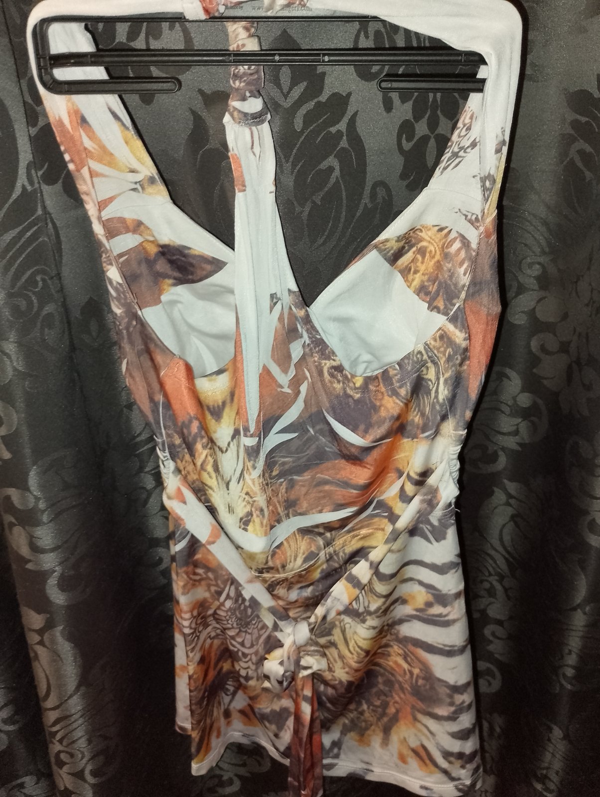 Letný top s lepardím vzorom - kupovaný tu na MK, ale nenosený keďže je mi trochu široký a nedrží dobre. Hore je gumička už trošku slabšia, takže vhodnejšia pre silnejšiu postavu. Dole je široká čie...