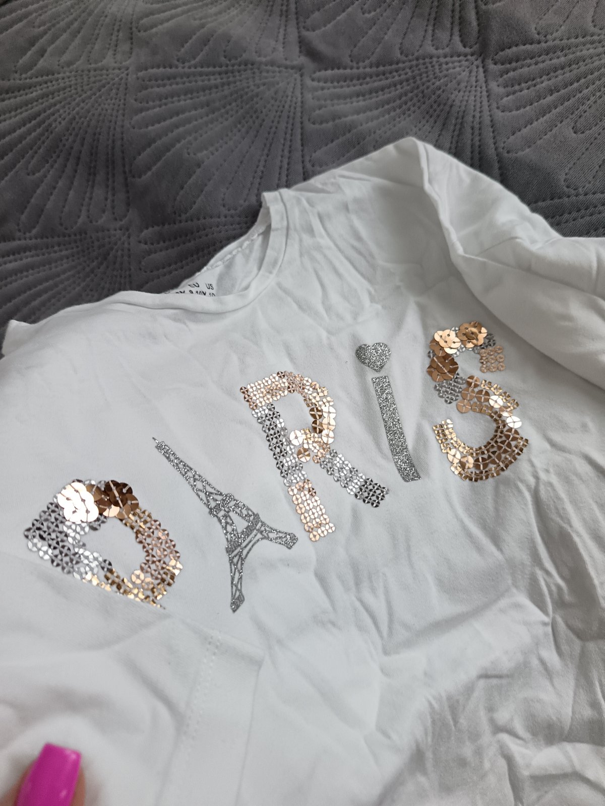 Predám krásny biely top s nápisom P🌸A🌸R🌸I🌸S.