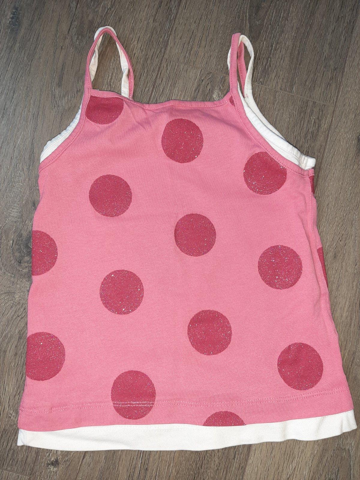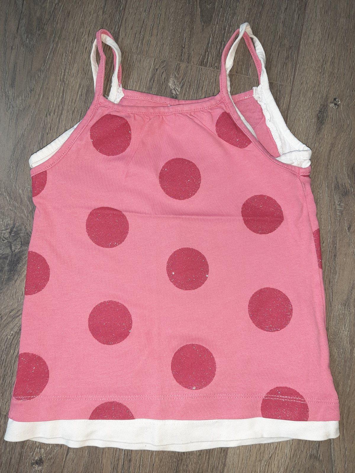 Dievčenský top bez rukávov s nápisom a fodričkami, elastické, veľkosť 98-104, materiál 100%bavlna. Nový tovar s visačkou. ROZMERY:dĺžka:42cm,pod pazuchami meraná šírka:2x32cm,od pazuchy dĺžka dol...