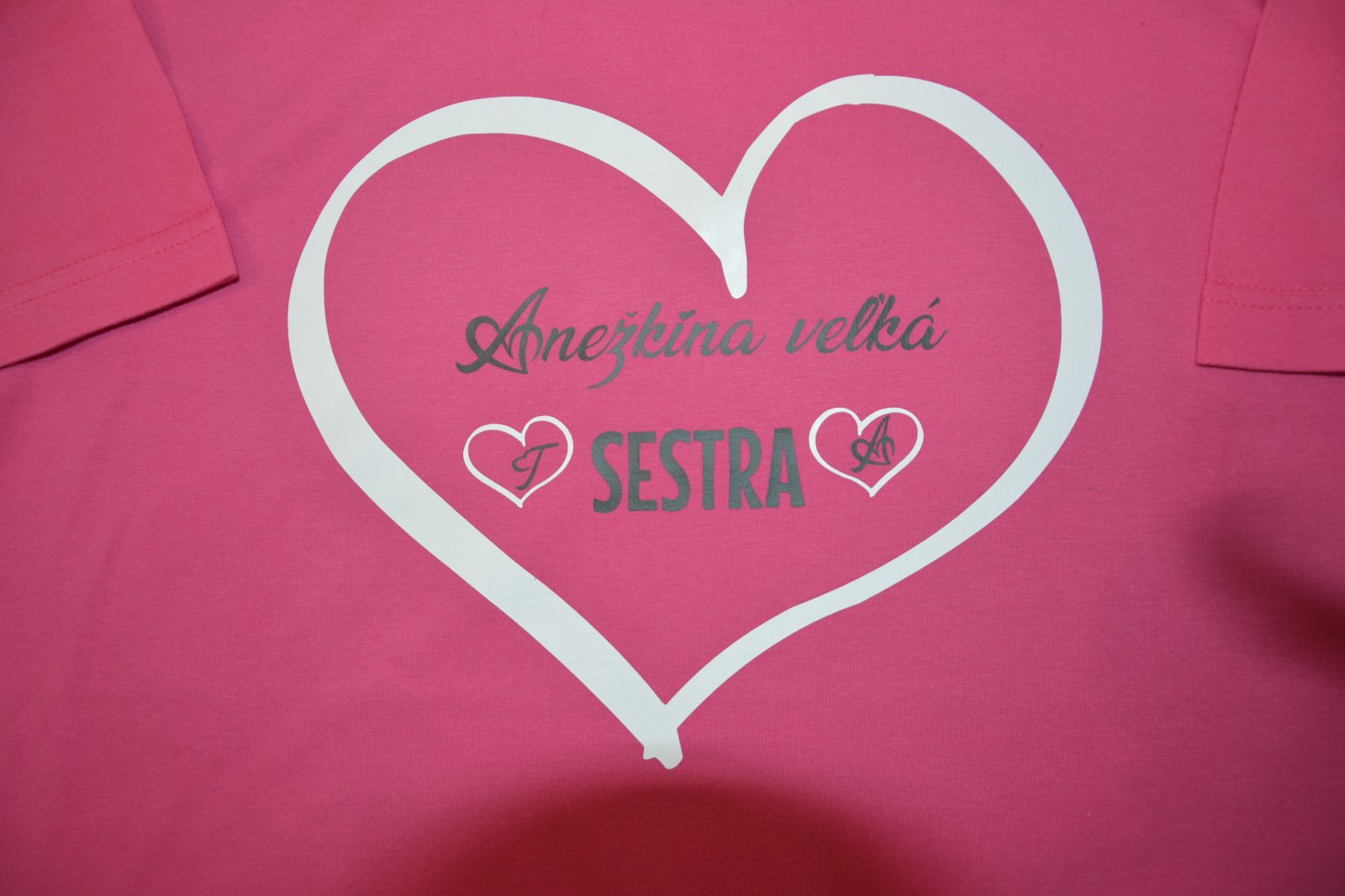 SkladomNa tričko je možné vyhotoviť aj v malých srdiečkach mená alebo iniciály súrodencov, alebo rodičov. Tričká je možné vyhotoviť aj s dlhým rukávom. Pri väčšom odbere možná zľava.