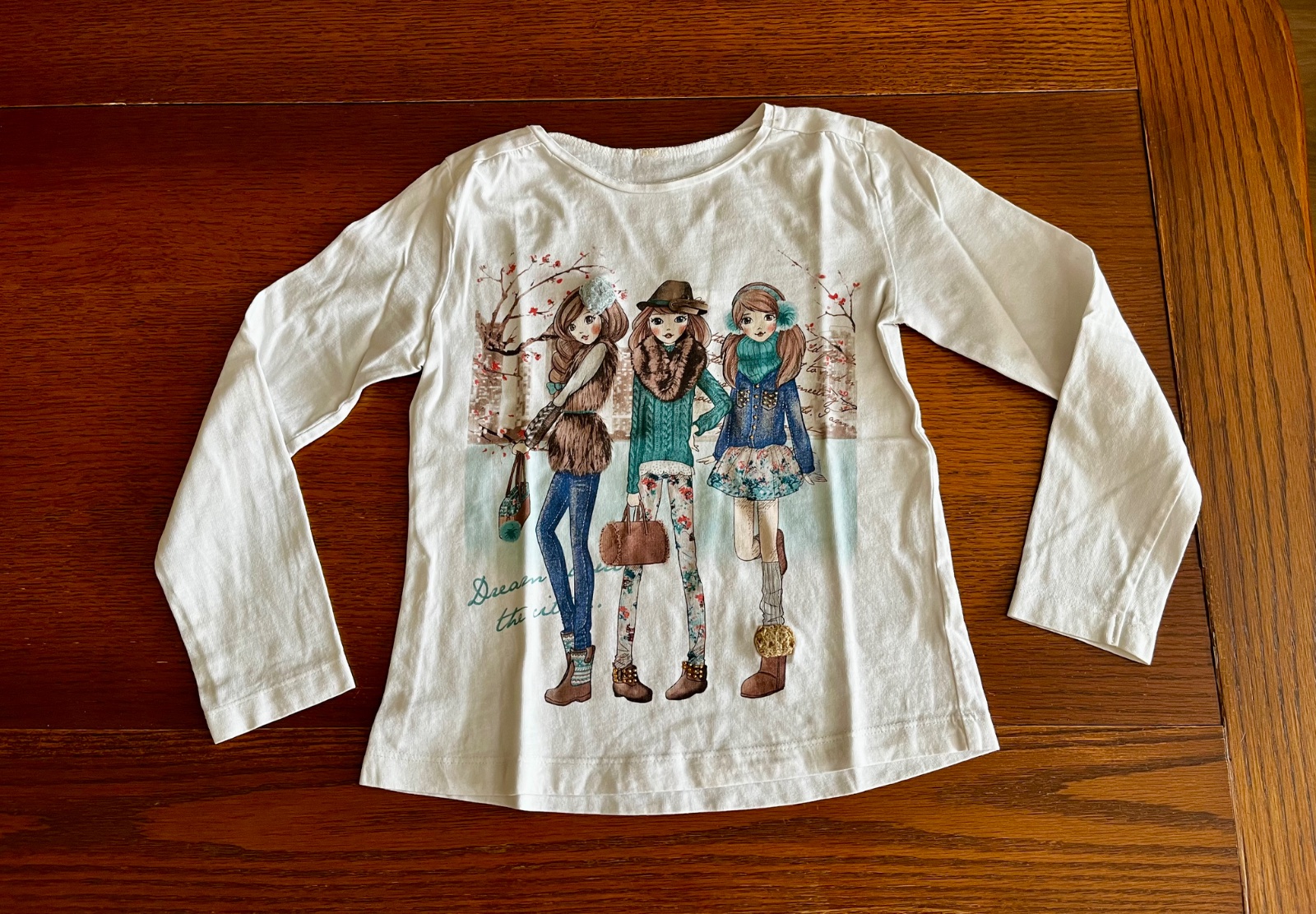 Super stav, párkrát oblečené tričko s motívom dievčat z jesennej kolekcie Mayoral Chic.
