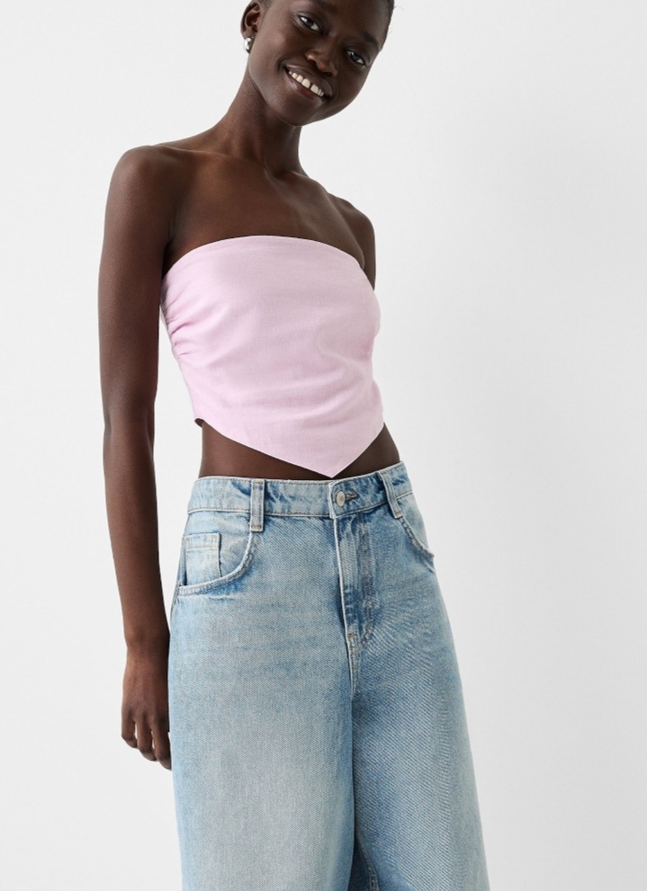 Nový bez visačky, ľanový, vzadu pružné gumky, veľkosť XS, šírka pod pazuchami 35 cm, natiahne sa na 45 cm, dĺžka cez stred 29 cm