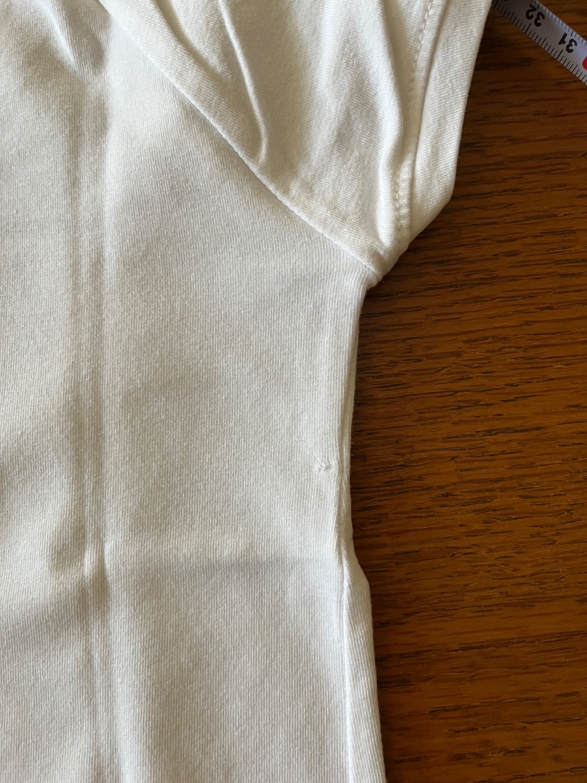 Vzadu je cca 1 mm chybička v látke, ktorá tam bola od novoty, ale zanikne, lebo je takmer vo šve pri pazuške.