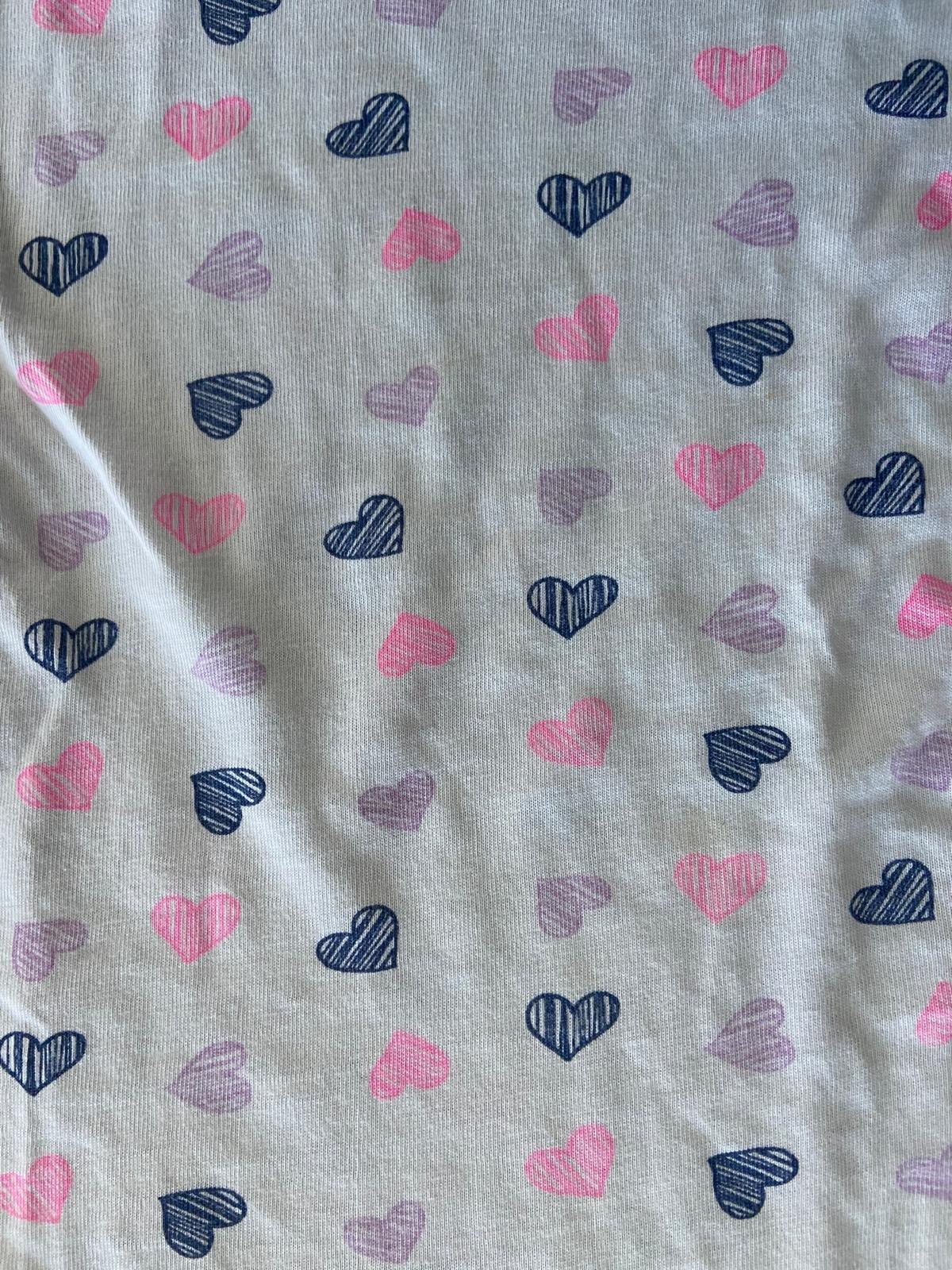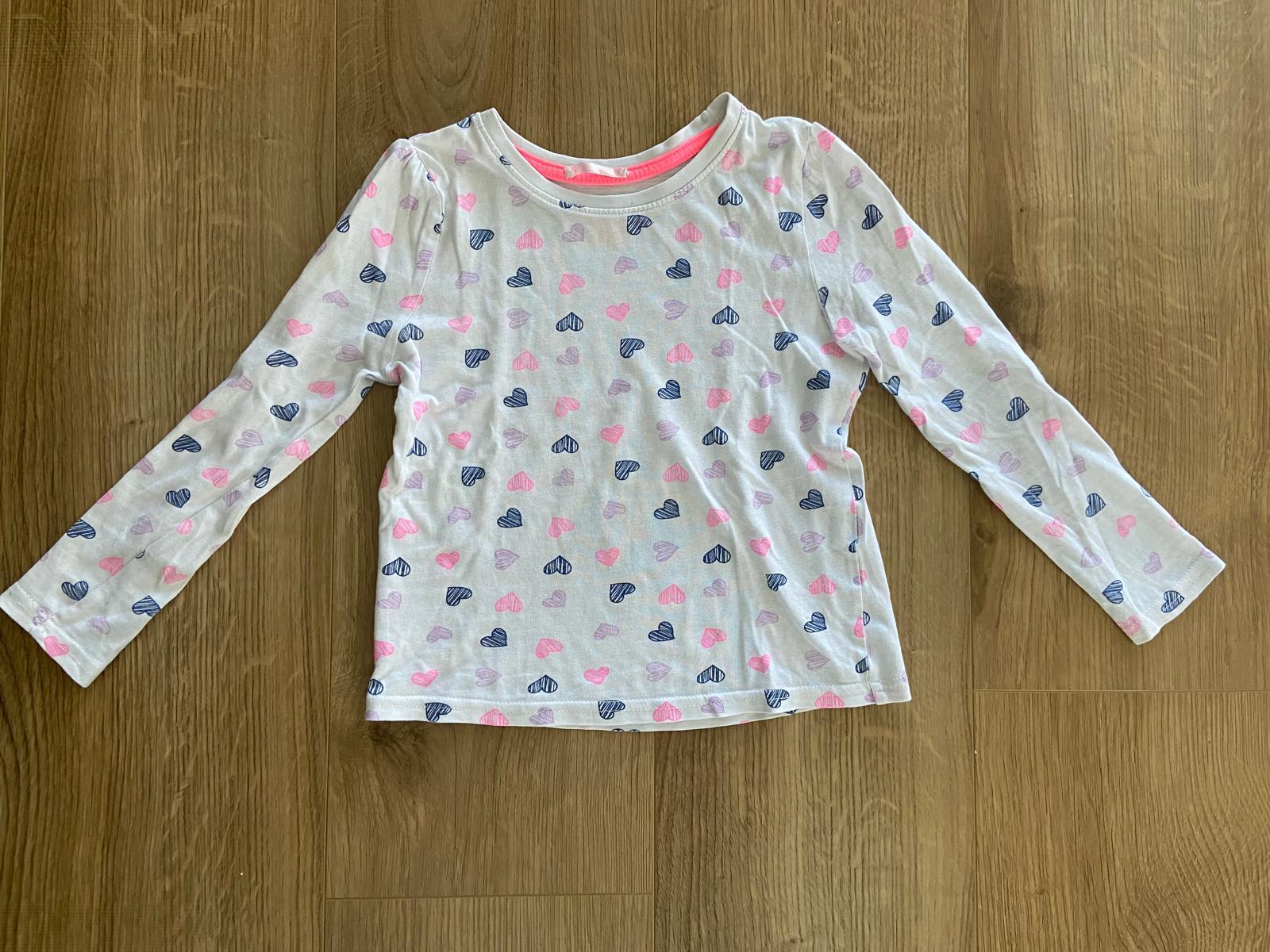 Veľmi, veľmi pekné a dobre kombikovateľné tričko so srdiečkami, má nesmierne príjemný materiál, taká tenká tričkovina, ale dobre drží tvar a vobec sa nežmoľkuje. Moja dcérka veľmi rada nosila do škôlky, určite odporúčam. 100% bavlna. Cena bez pošty