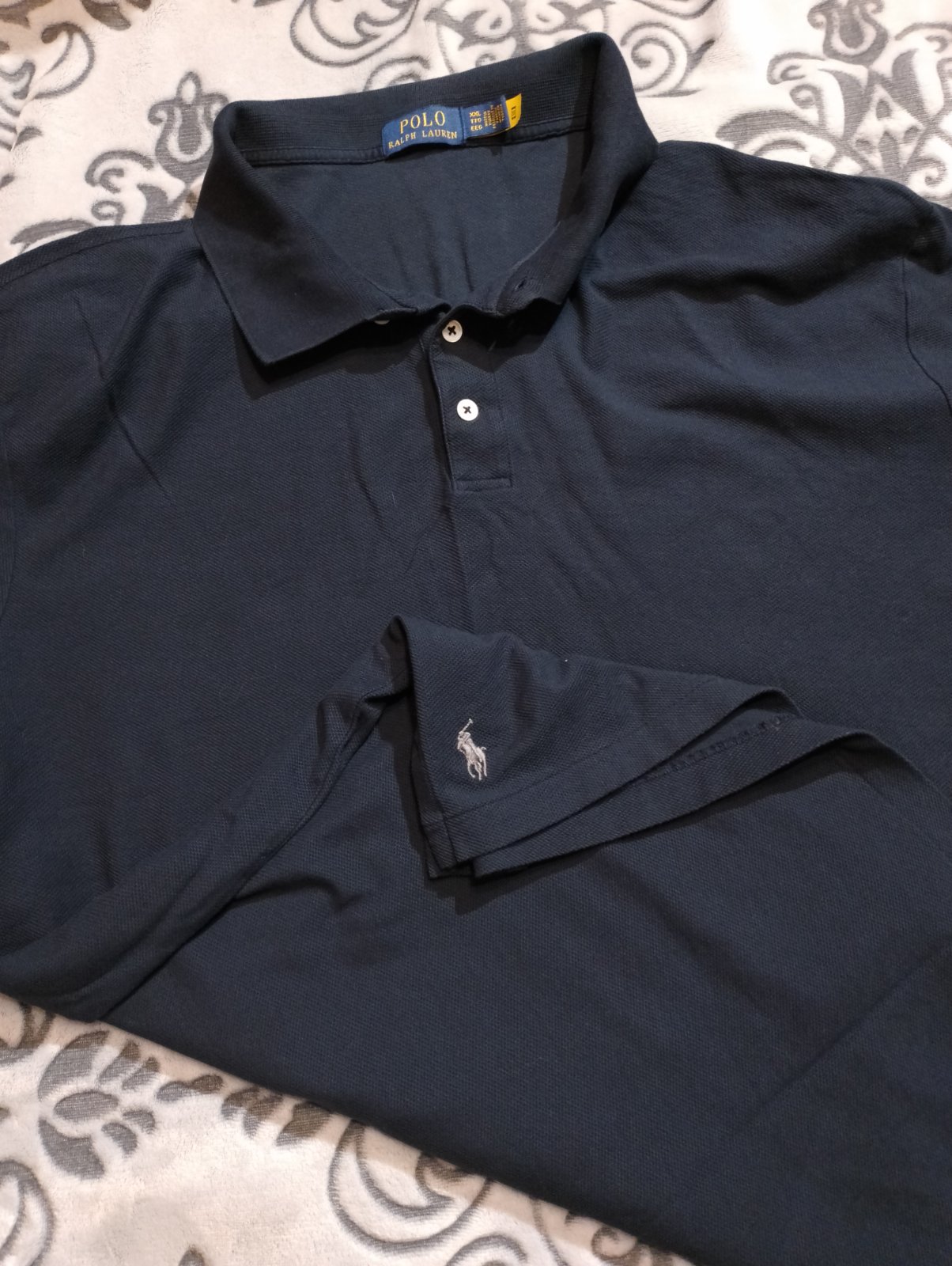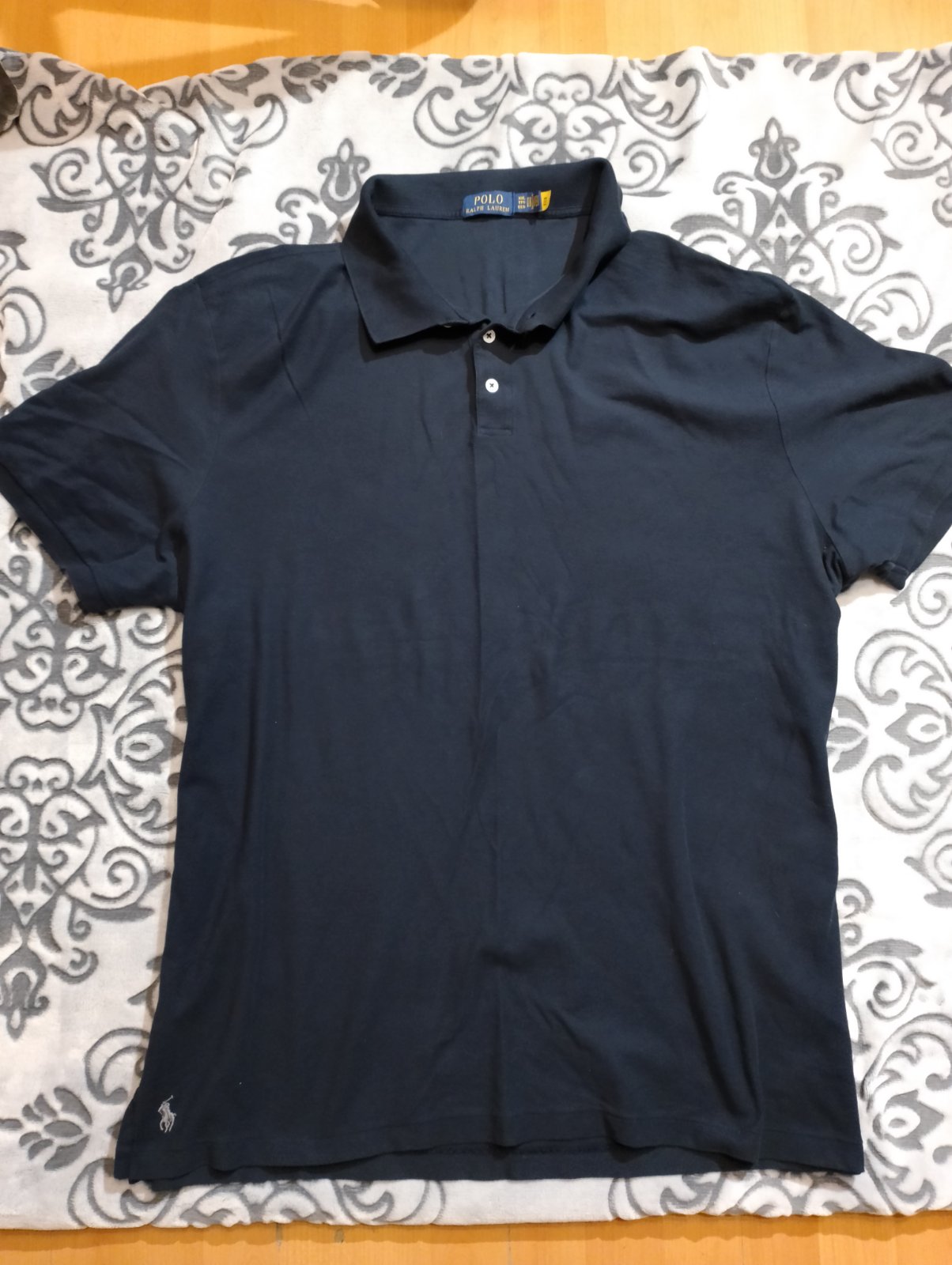 Nosené v dobrom stave, farba tmavomodrá , veľkosť udaná XXL, v pohode sedí aj na 3xl . Vpredu logo Ralph Lauren. Špp 66cmx2 a dĺžka 80cm