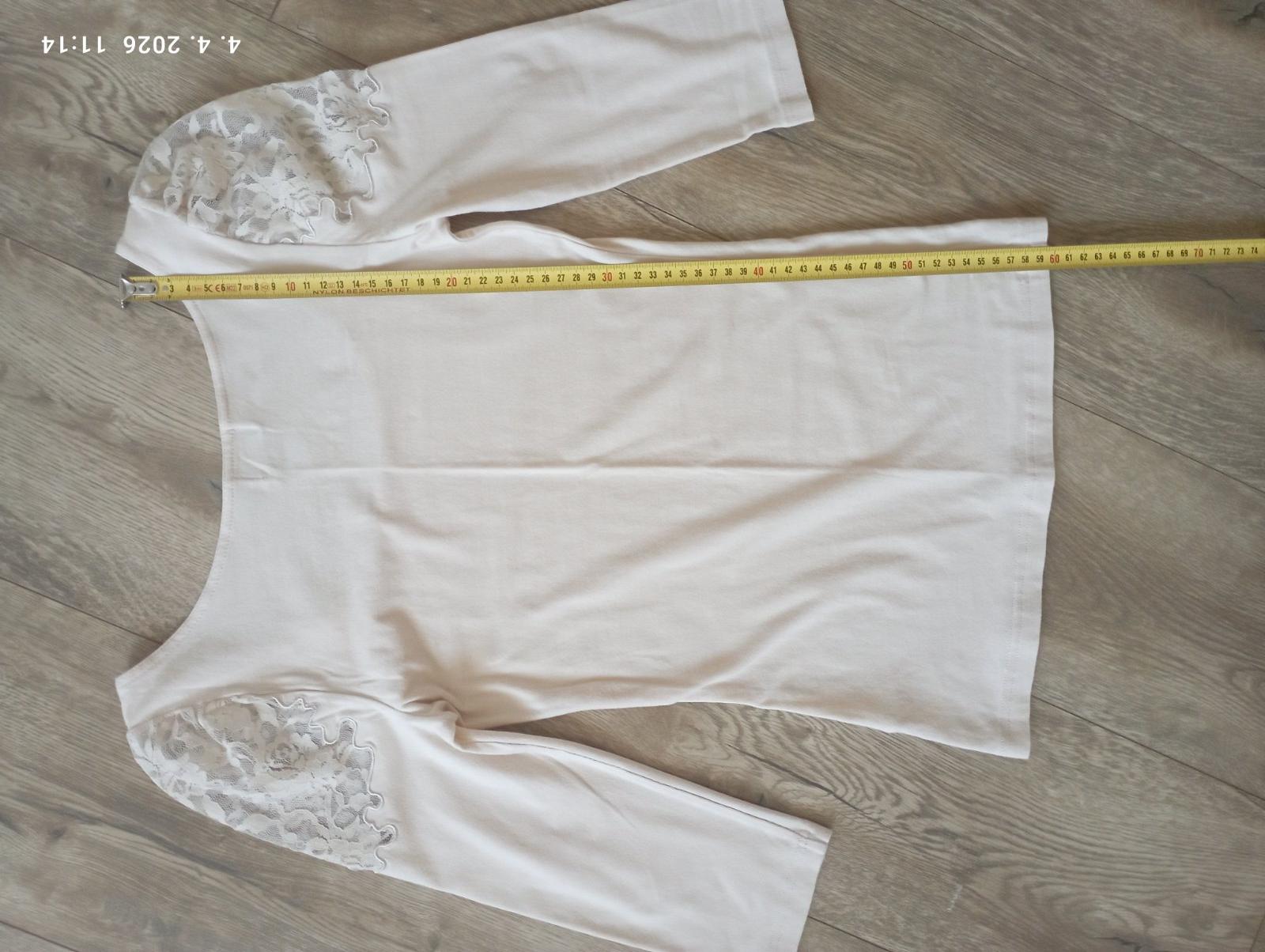Tričko v peknom stave, iba pár krát oblečené. Má dosť vykrojený výstrih, takže ideálne je použiť podprsenku bez ramienok. Čipka na pleciach ukáže naozaj krásne. Zakaždým bolo obdivované. Použiteľné je k riflliam aj k sukni na príležitosť. Posnažím sa doplniť foto na postave..
