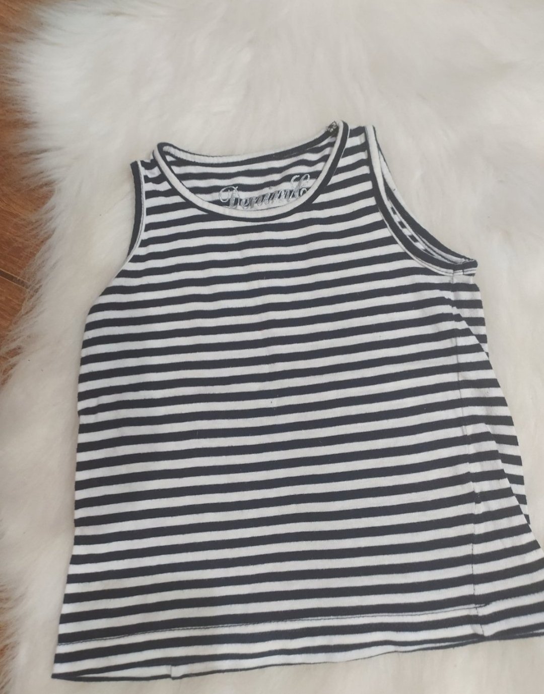 Dievčenské tričko bez rukávov s potlačou. Elastické. Materiál:95%bavlna,5%elastan. Značka Original Marines. Pre 4r. Nový tovar s visačkou. ROZMERY: dĺžka meraná vzadu:38,5cm,pod pazuchami meraná ...