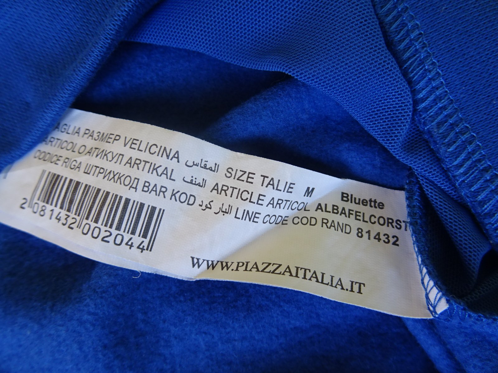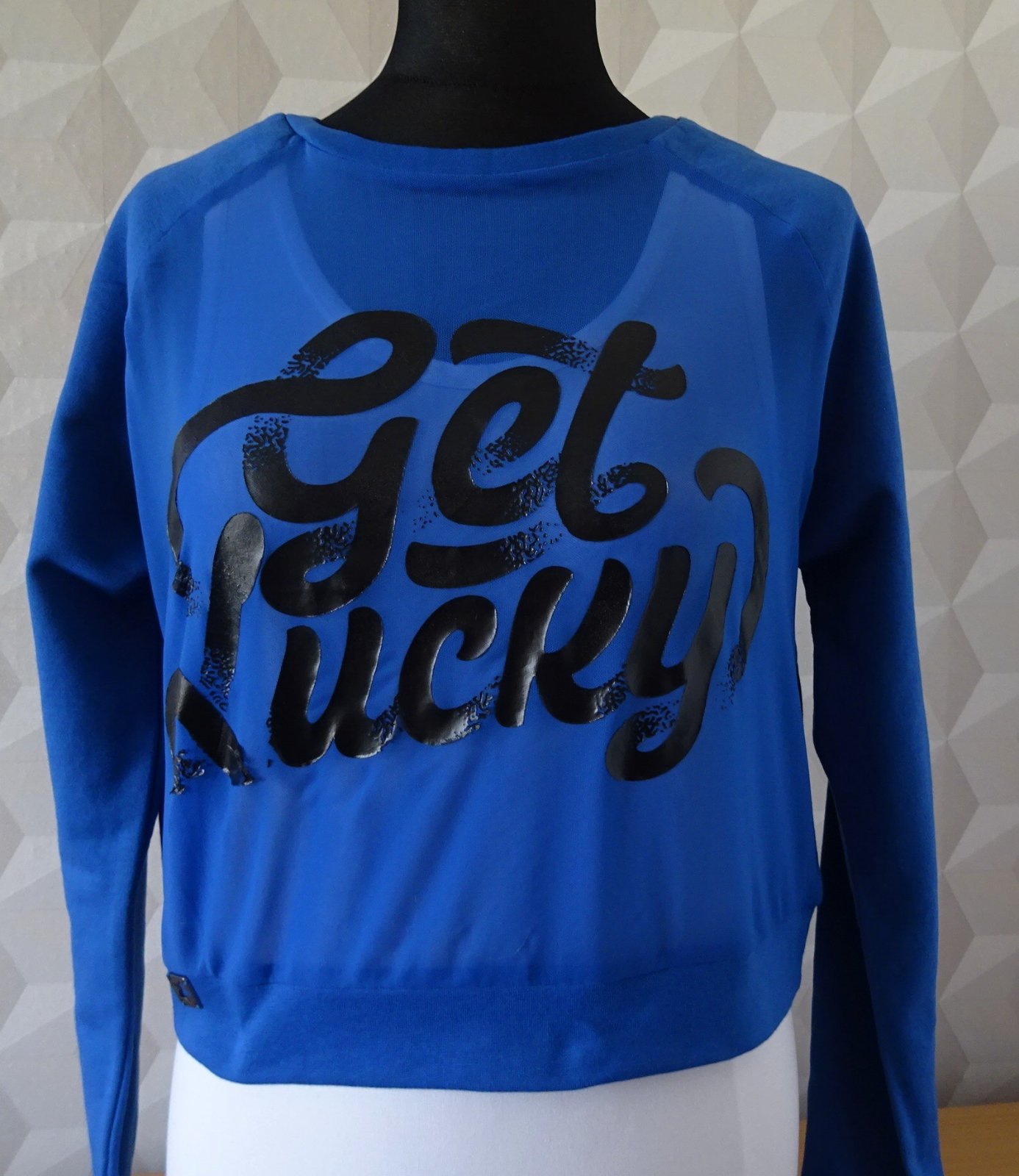 Dámsky crop, mikina Piazza Italia, veľ. M, rozmery: dlžka 47cm, pod pazuchami 2x52cm, rukáv je raglánový - od krku 74cm a od pazuchy 51cm. Farba je kráľovská modrá.