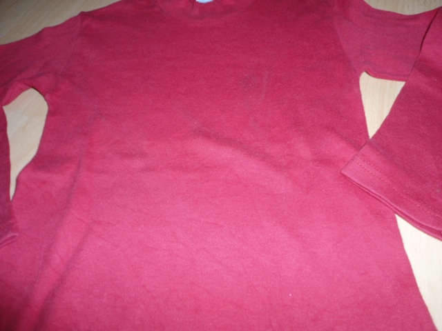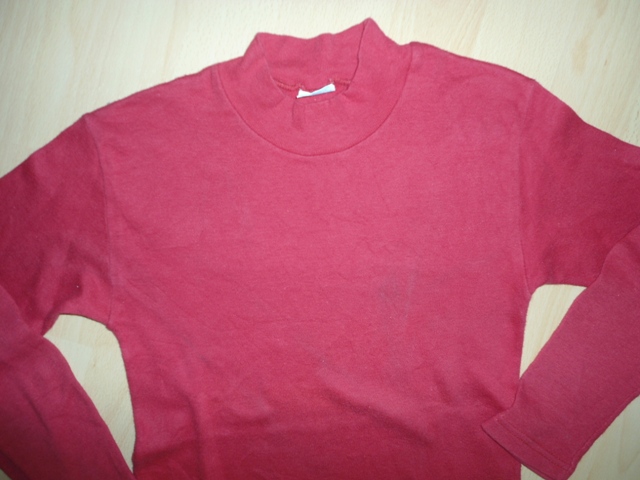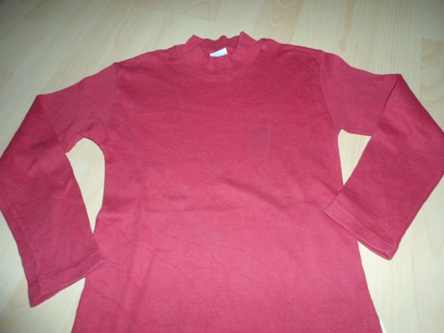 63k. cerveny rolacik dlhy rukav, 100% bavlna, darujem k objednavke na poziadanie, flakaty, velk. 116, dlzka 49cm, rukav 38cm, cez prsia 31,5x2cm