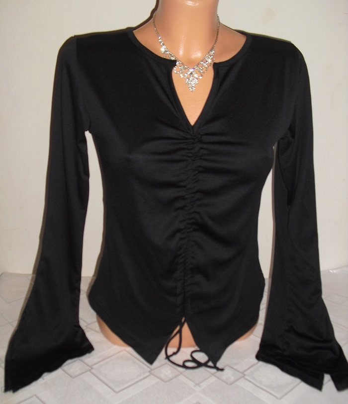 predam nadherny cierny sexy topik, jemnucky, hladky material, velkost uvedena 36, ide na nase s, s/m. je nadhernom stave. sirka m46 cm x 2, dlzka cca 61 cm asymetricka.
