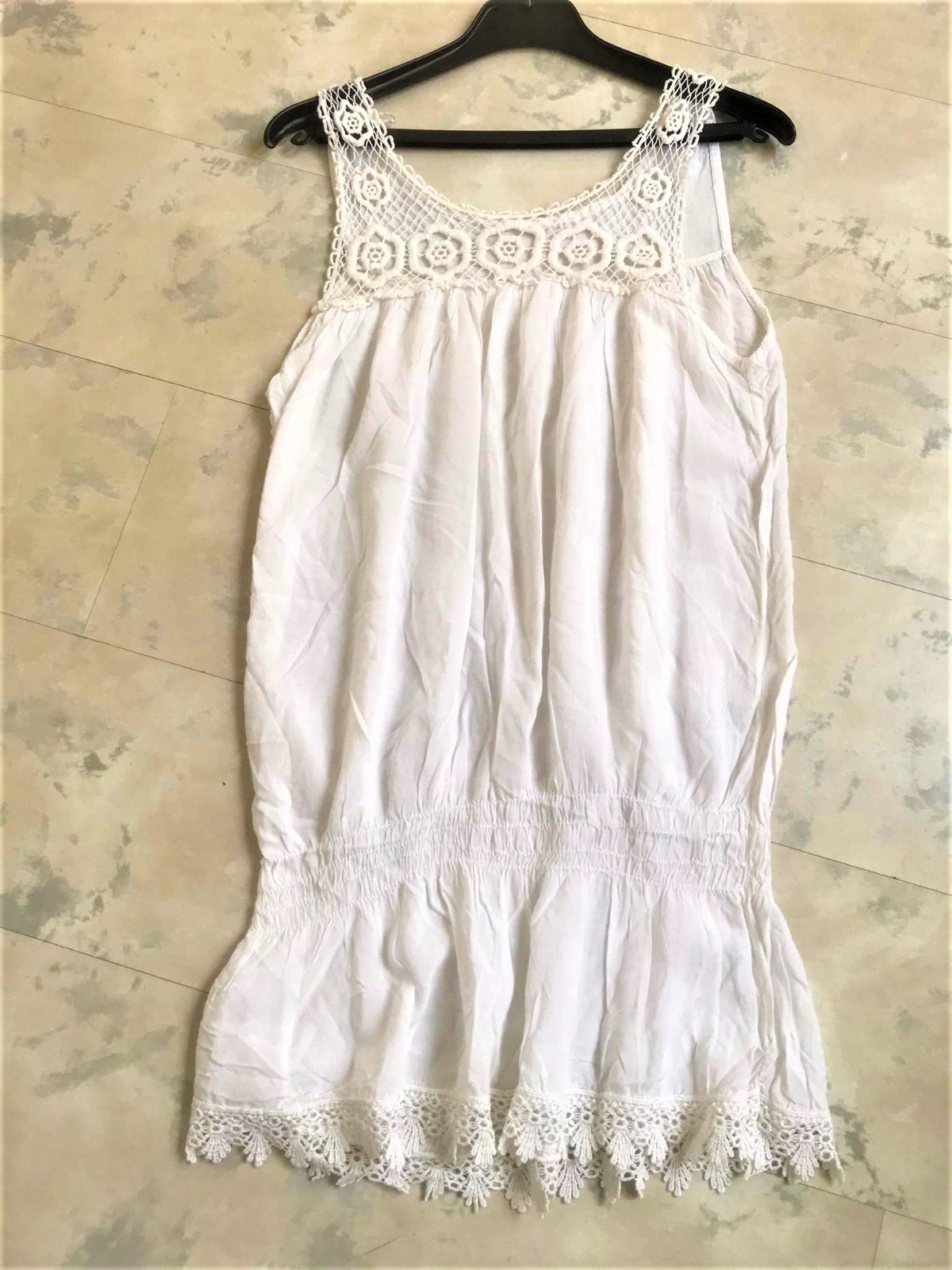 zaujímavé dlhšie tielko s peknými detailami,s nízkym pásom - gumičkovanie sa dá pekne podkasať ,šírka pod pazuchou cca 45 x 2 cm,je tam rezerva ( riasenie ),dlžka meraná od pazuchy smerom dolu = 56 cm,dlžka celkom = 79 cm, 95% viskoza,5% elastan