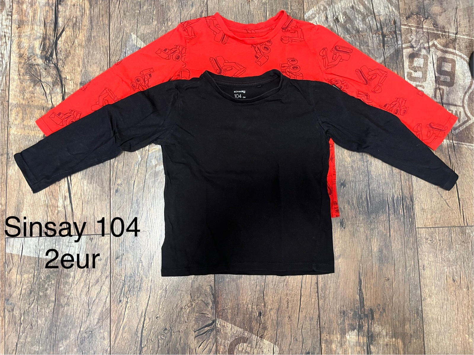 Predám bavlnené tričká s dlhým rukávom, krásne sýte farby, nosené jedným dieťaťom v top stave. Veľkosť uvedená 110, ale keďže je to sinsay, tipla by som skôr veľkosť 104. Na dĺžku majú tričká od kr...
