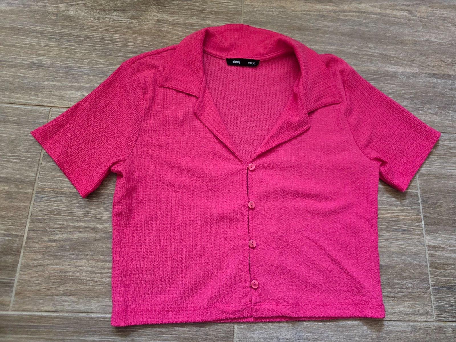 Biely ľahučký top, predný diel aplikácia ružovej s flitrami, zadná časť bielas plisovanym zadným dielom.Povodna cena 25 Eur.