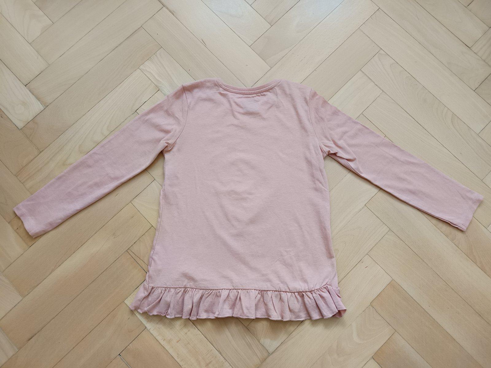 ruzove, bodka od pera na rukave, v. 128 s mackou v. 134, sedi skôr na 128, bodka od pera na rukave biele v. 134, skor 128, bez poskodeni az na tie popisane bodky pekny stav. cena spolu
