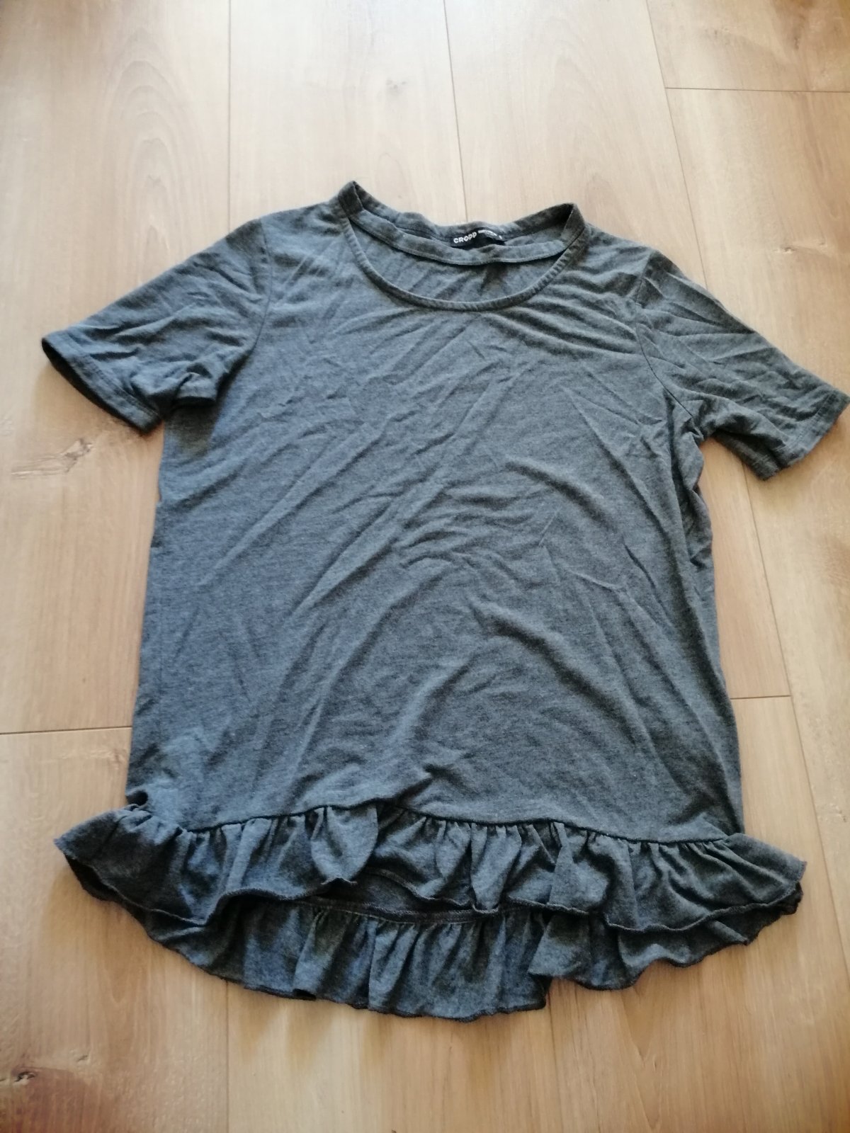 Sivé tričko s volánom Crop town