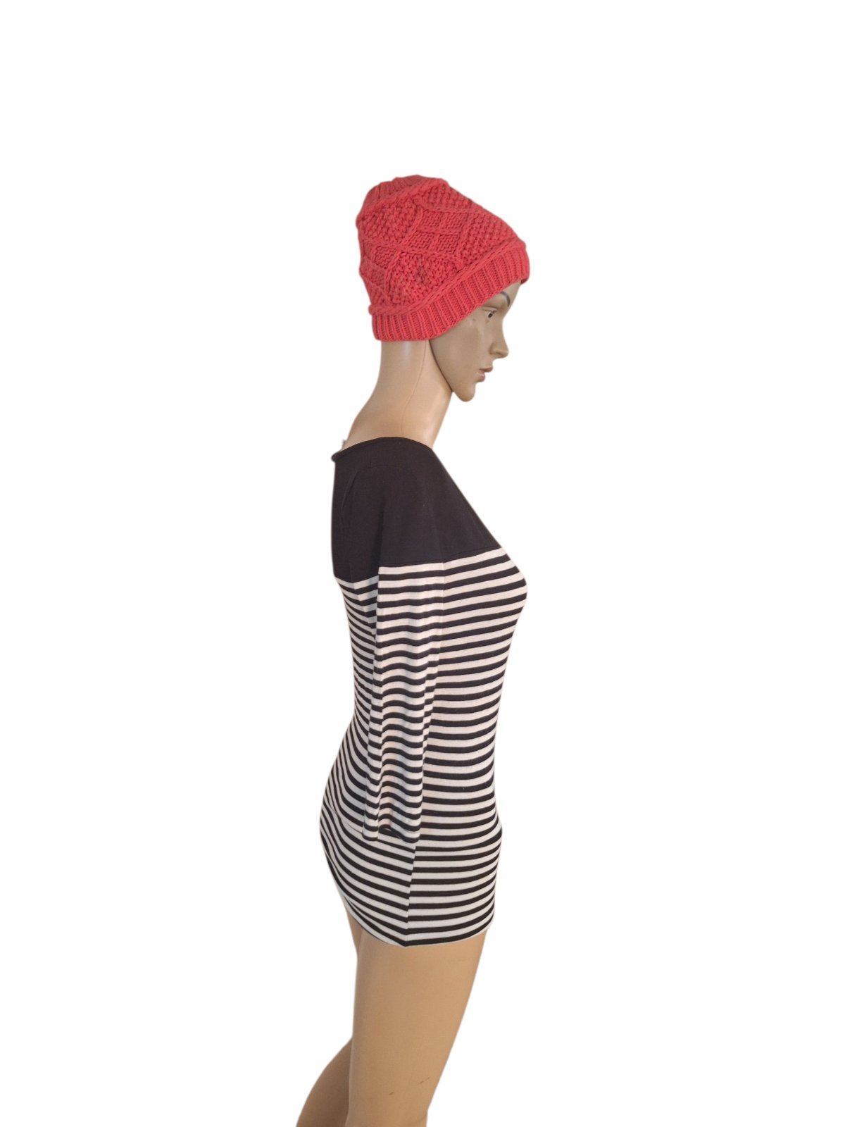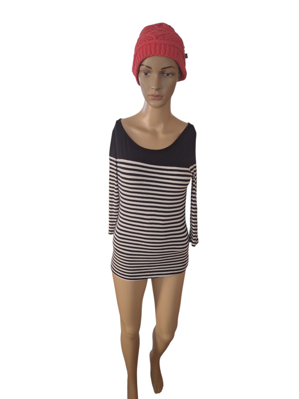 Dámske značkové bavlnené tričko. Je elastické. Dĺžka je 60cm,obvod hrudníka je 70cm a obvod pása je 68cm. Dĺžka rukáva je od krku 50cm. kód 1463A