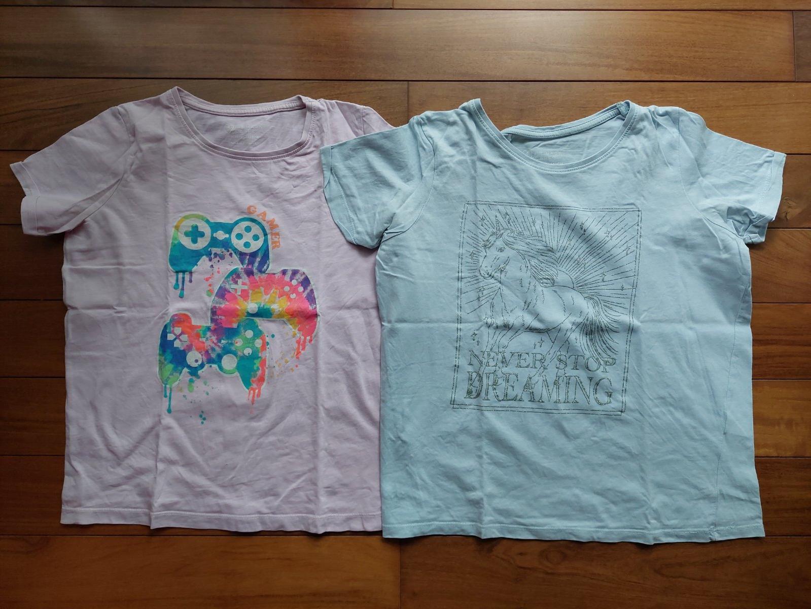 Dve bavlnené tričká, nosené dcérou jedno leto, nemajú žiadne poškodenia, len sú nevyžehlené; cena spolu.