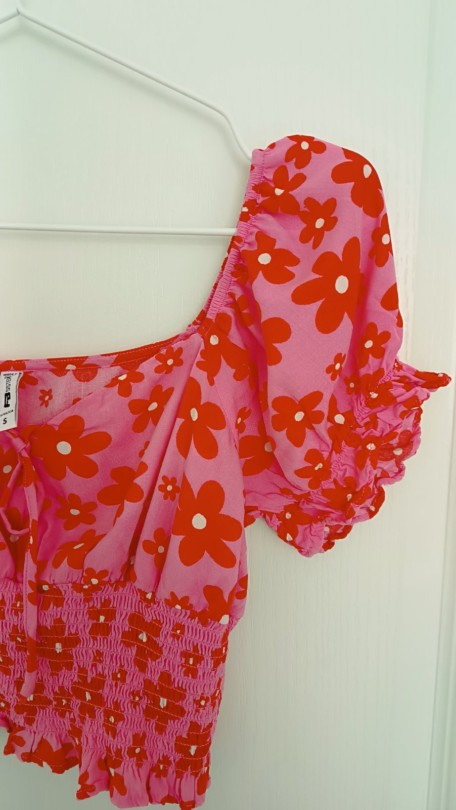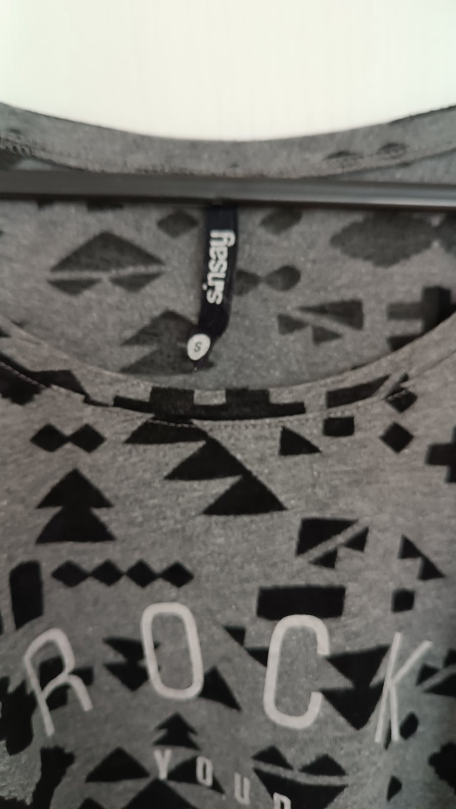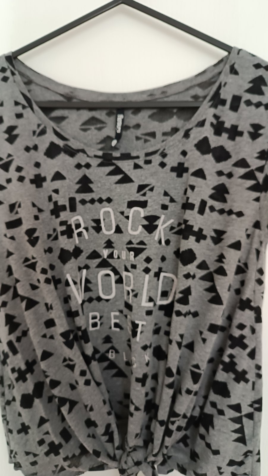 Sivo cierny značka Sinsay, Šírka 43cm, dĺžka 48cm, vpredu sa viaže, 60% bavlna, 40% polyester , bez poskodenia, tie čierne časti mierne presvitajú, ružový značka FB sisters Dĺžka 40cm, spodná časť šírka 28 cm, prsia cca 40cm, 100% viskóza, spodná časť sa dá natiahnuť, prispôsobí sa telu, cena spolu