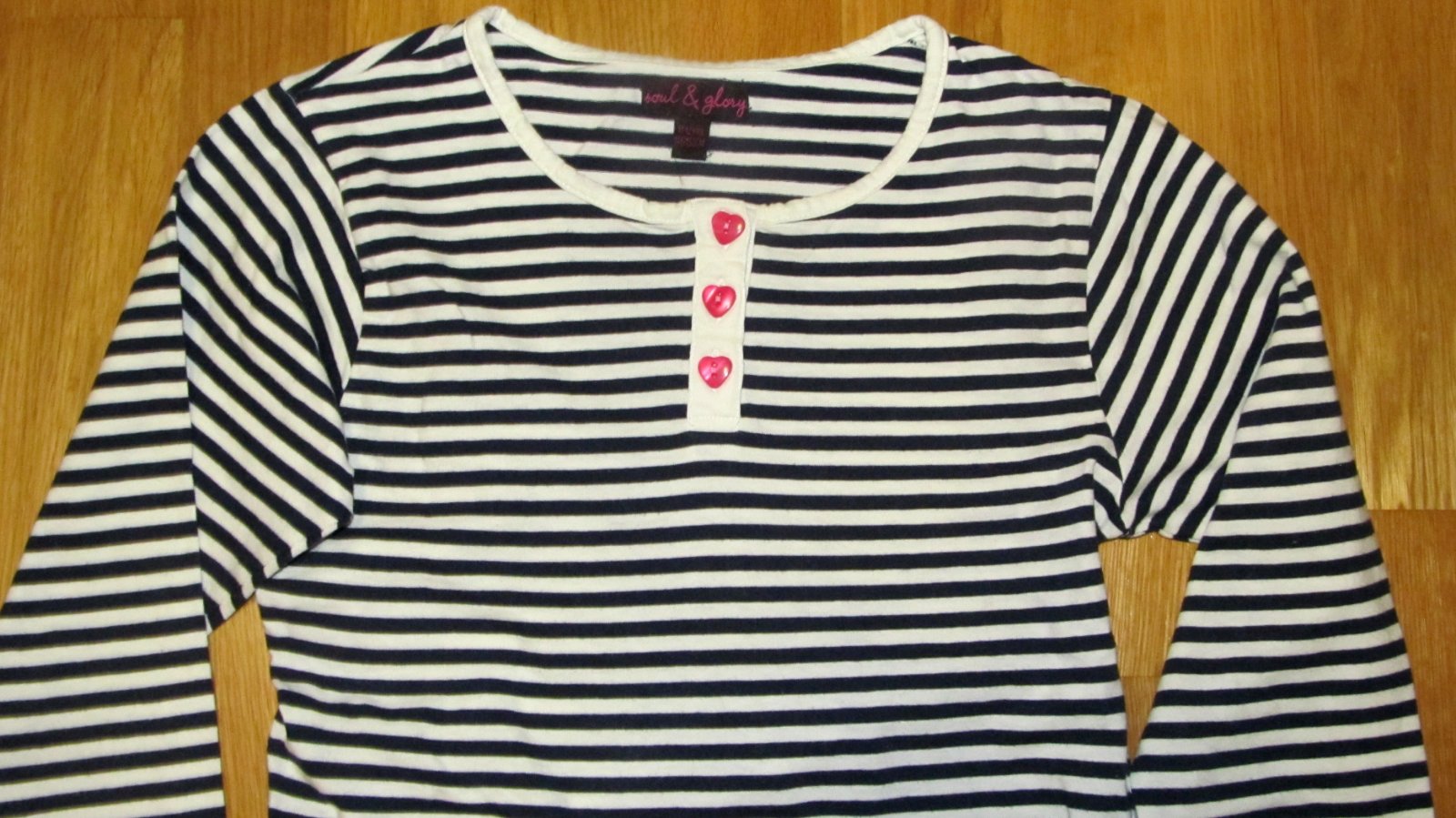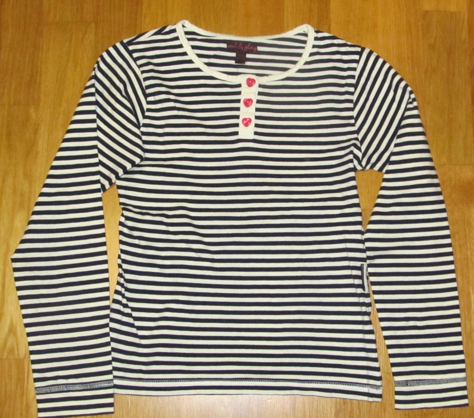 pasikate tricko s ozdobnymi gombickami, ktore bolo len oprane a zabudnute v skrini. Material bavlna, gombiky v tvare srdiecok. rukav od krku 66 cm dlzka od pleca 53,5 cm , sirka pod pazuchu 38,5 cm