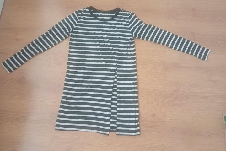 Oblečené asi 2-3 krát, top stav. Prestrih pod prsiami. Rozmery: šírka 48,5 cm, rukáv: od pleca 63 cm, od podpazušia 51 cm, od krku 72 cm, dĺžka 85 cm.