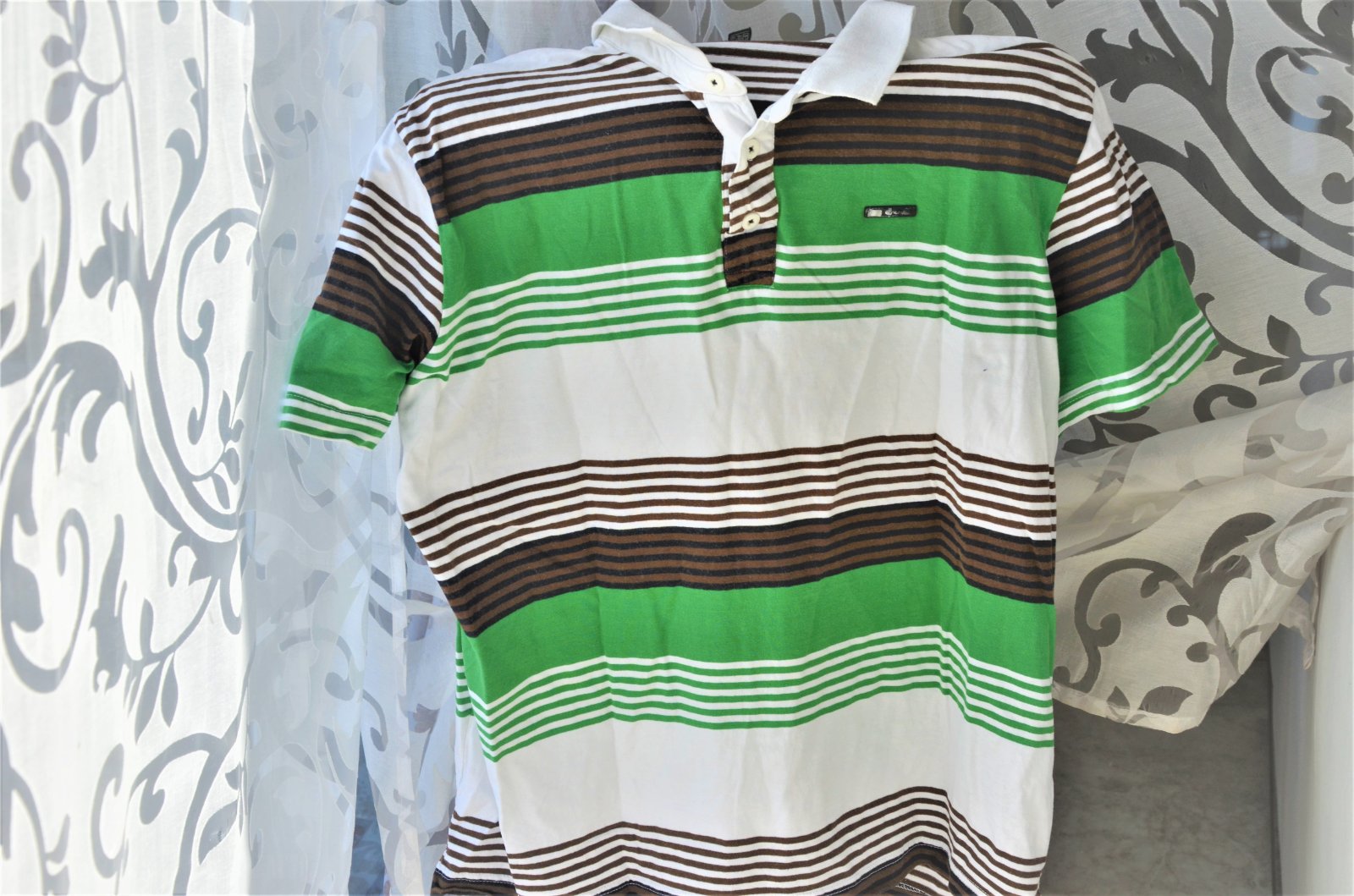 nosené,bavlnené,kupované v Crope-dĺžka 67cm,šírka pod pazuchami 2x53cm,chýba ozdobný pliešok na prsiach,viď foto..kvalitné,bavlnené,mierne elastické..kuk aj na iné moje inzeráty
