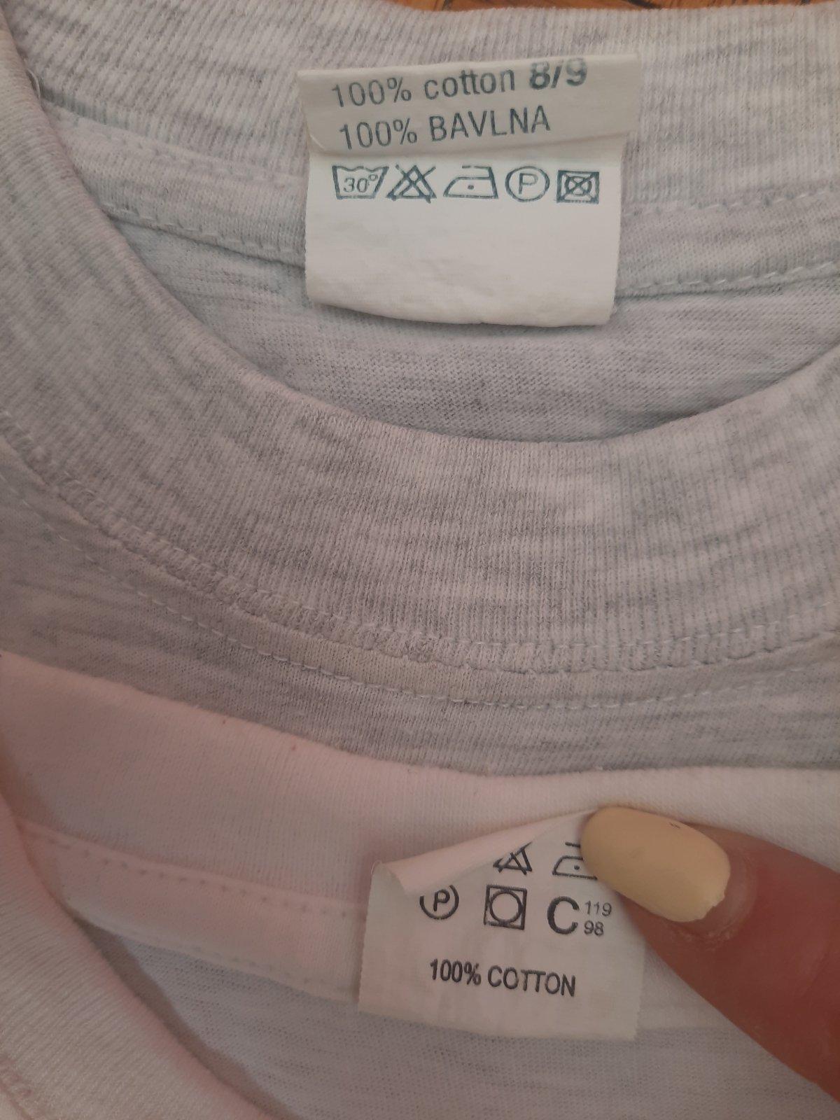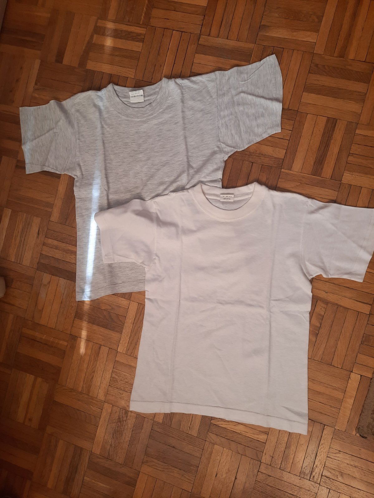 Predám 2 kusy bavlnených tričiek vo veľmi dobrom stave. Jedno je biele, druhé svetlosivé. Veľkostne sú skoro rovnaké, biele o kúsok dlhšie. Veľkosť sa píše na 10 rokov. Vhodné aj na telesnú výchovu.