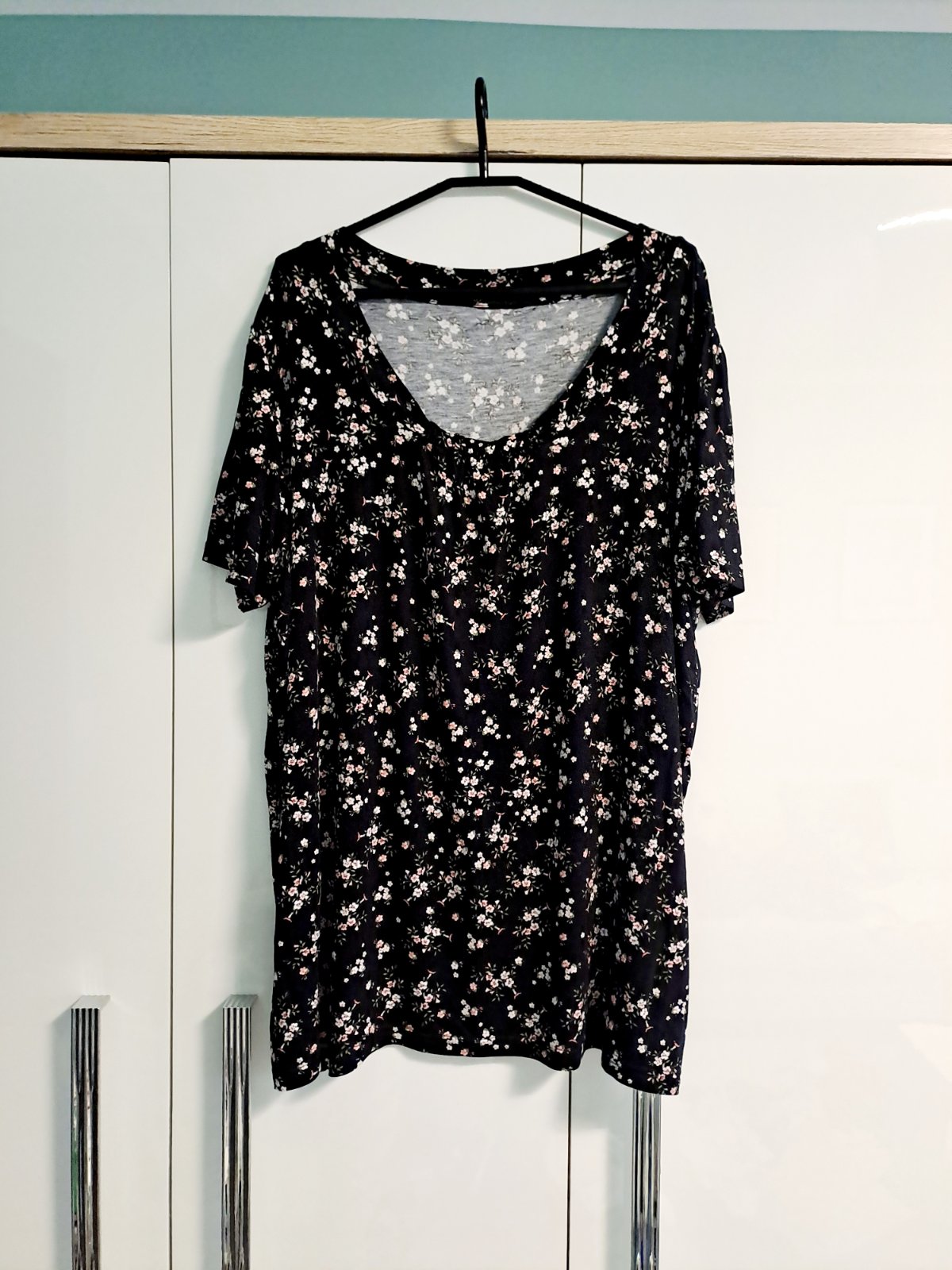 Kvetinkové tričko značky Janina. Veľkosť: dvojčíslo: 46/48. Bez poškodení.