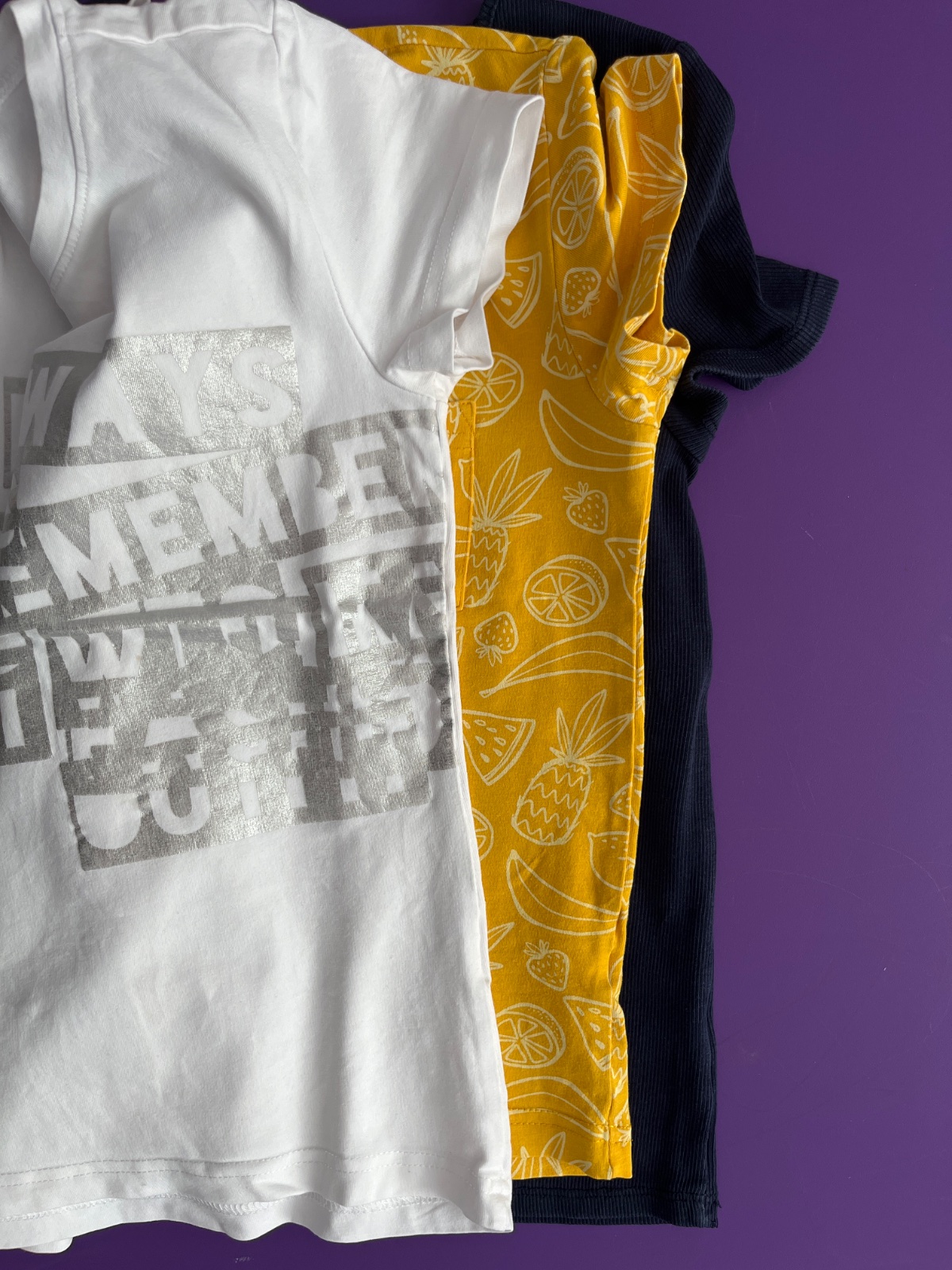 ... cena spolu. Predám pekné tričká (modré je HM) vo veľmi dobrom stave. Biele má slabo viditeľnú škvrnu od farby na rukáve.