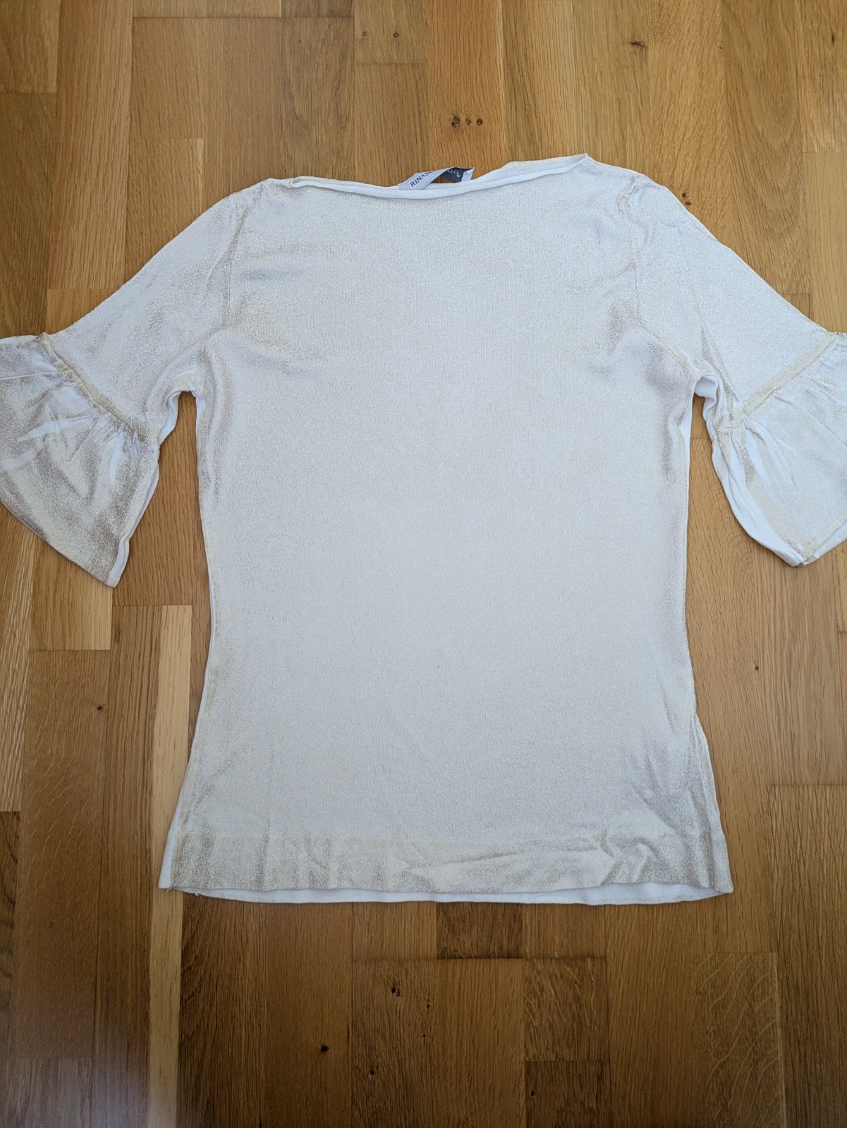 Volániky na rukávoch, predný diel so zlatou potlačou.