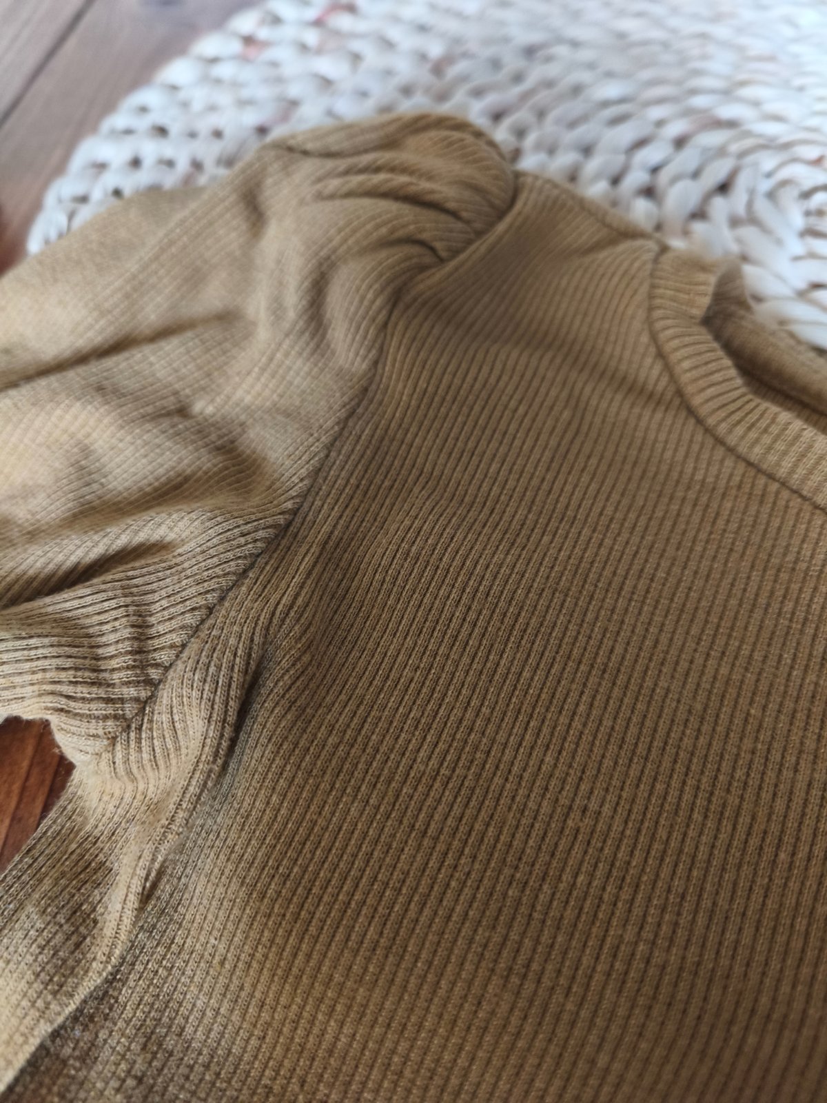 na rukáve je sfarbené.viď foto,nie je to nič hrozné,mäkká bavlna dĺžka 36cm šírka pod pazuchami 38cmx2 rukáv od krku 41cm