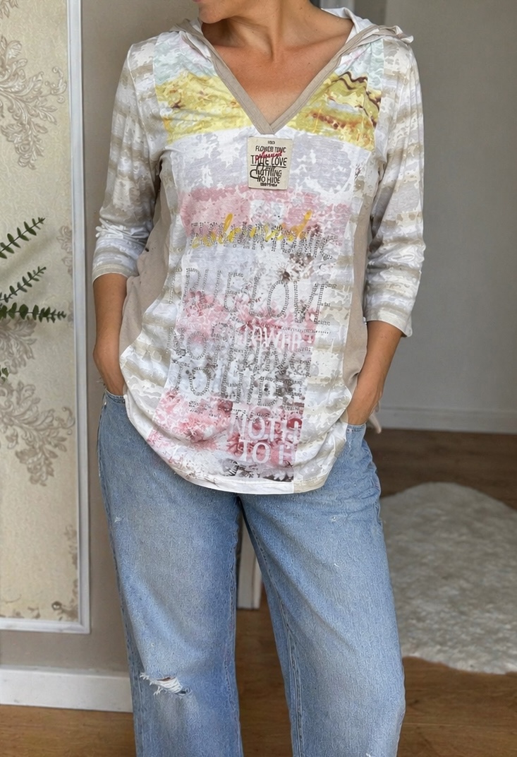 Luxusny športovy top s kapucňou, ako nový… prsia 50 cm, dĺžka 63 cm, vysoká kvalita.