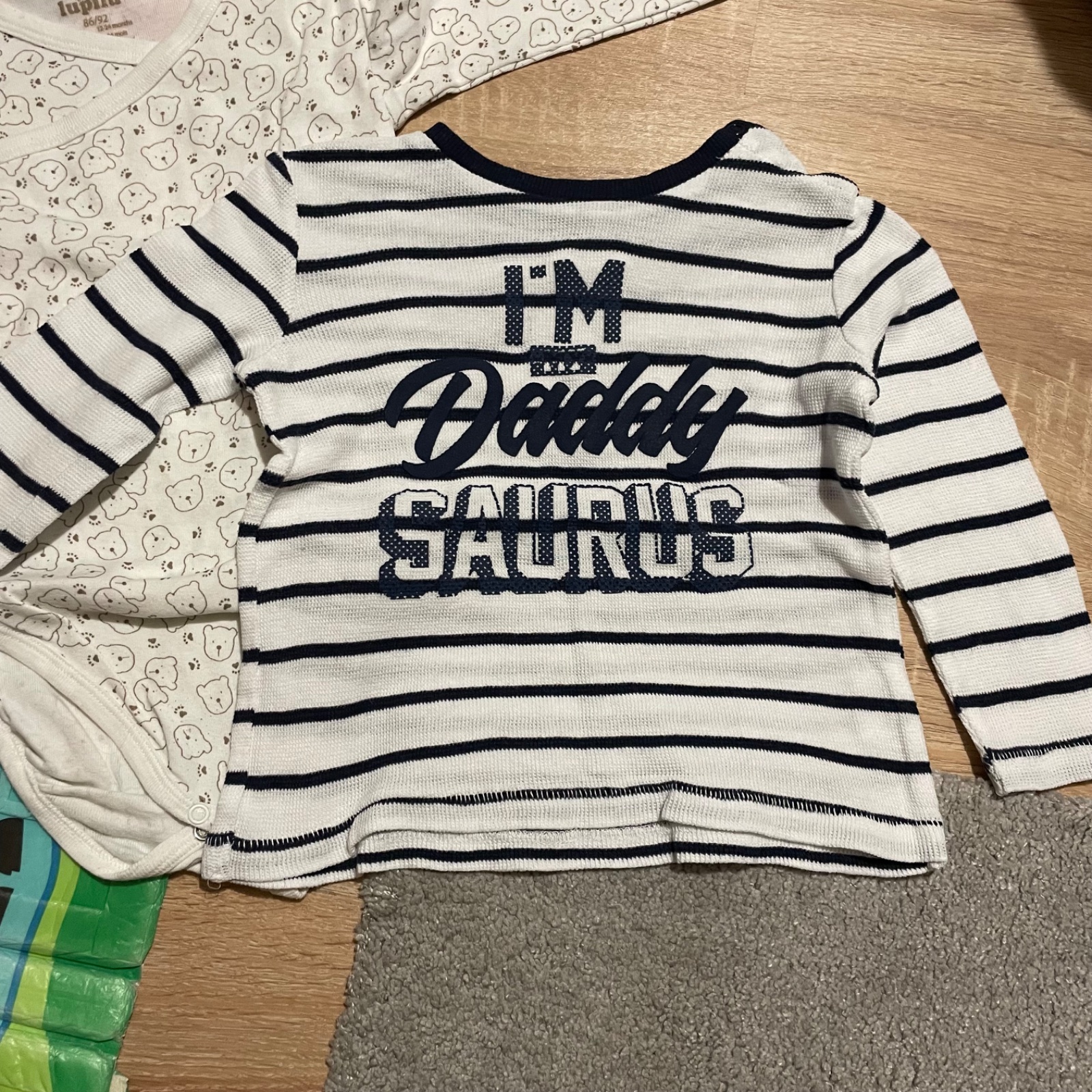 Set obsahuje 1x body na dlhý rukáv s macíkmi a 1x tričko na dlhý rukáv s nápisom. Obe vo vynikajúcom stave.