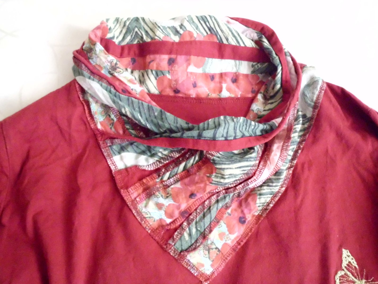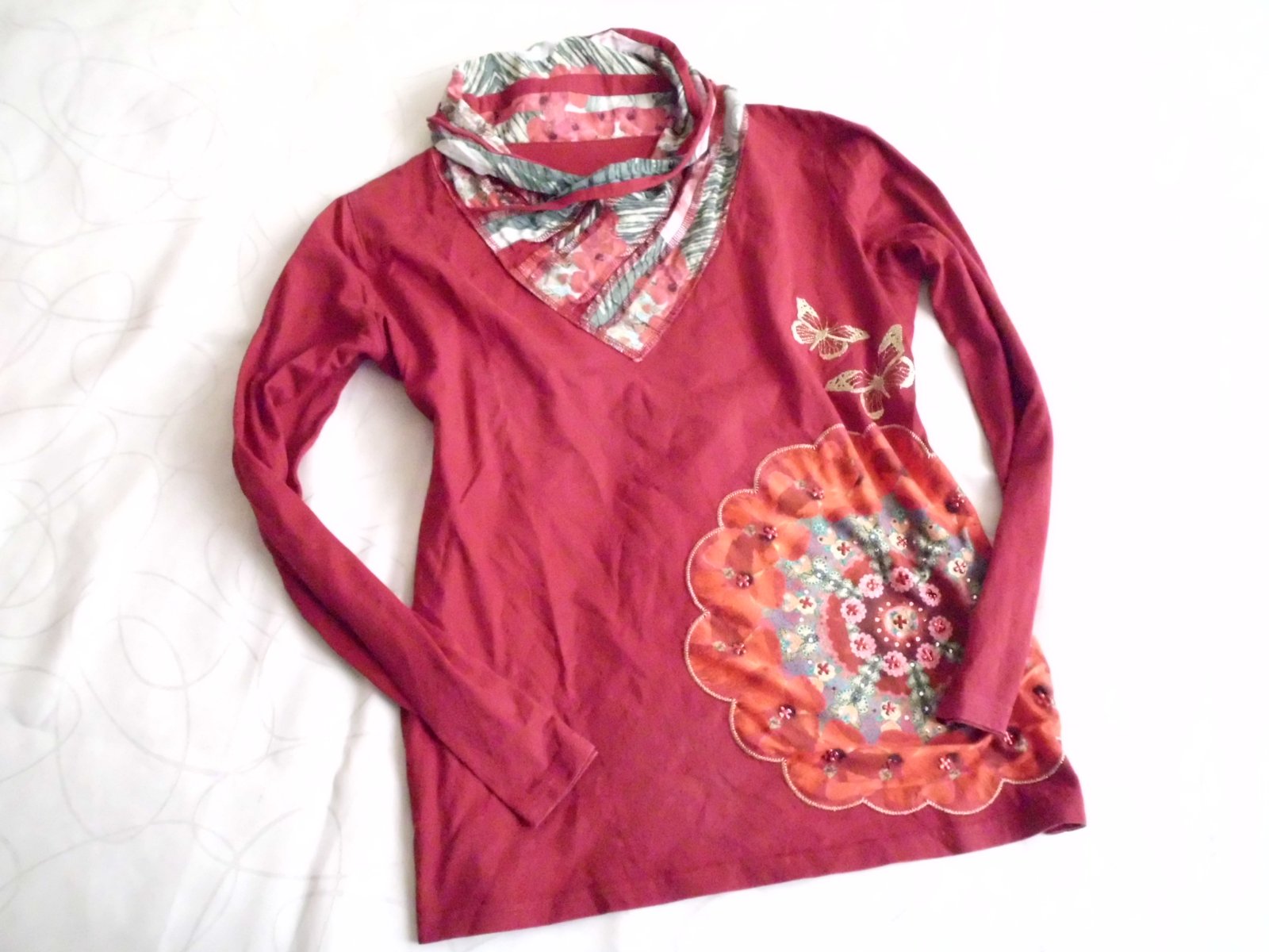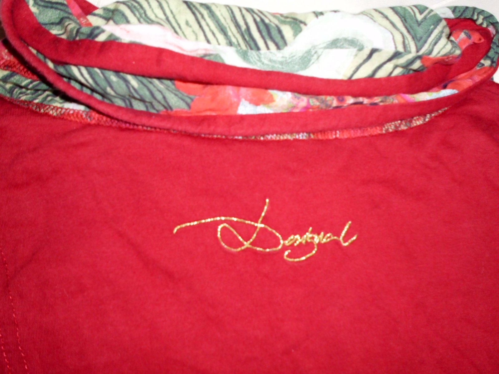 Darujem k nákupu nad 40€ dámske tričko Desigual vel. XL, šírka 54 cm, dĺžka 61 cm ,rukáv 58 cm, veľmi príjemný tenší materiál, farba tmavočervená podklad + aplikácie na prednom diely , top super stav