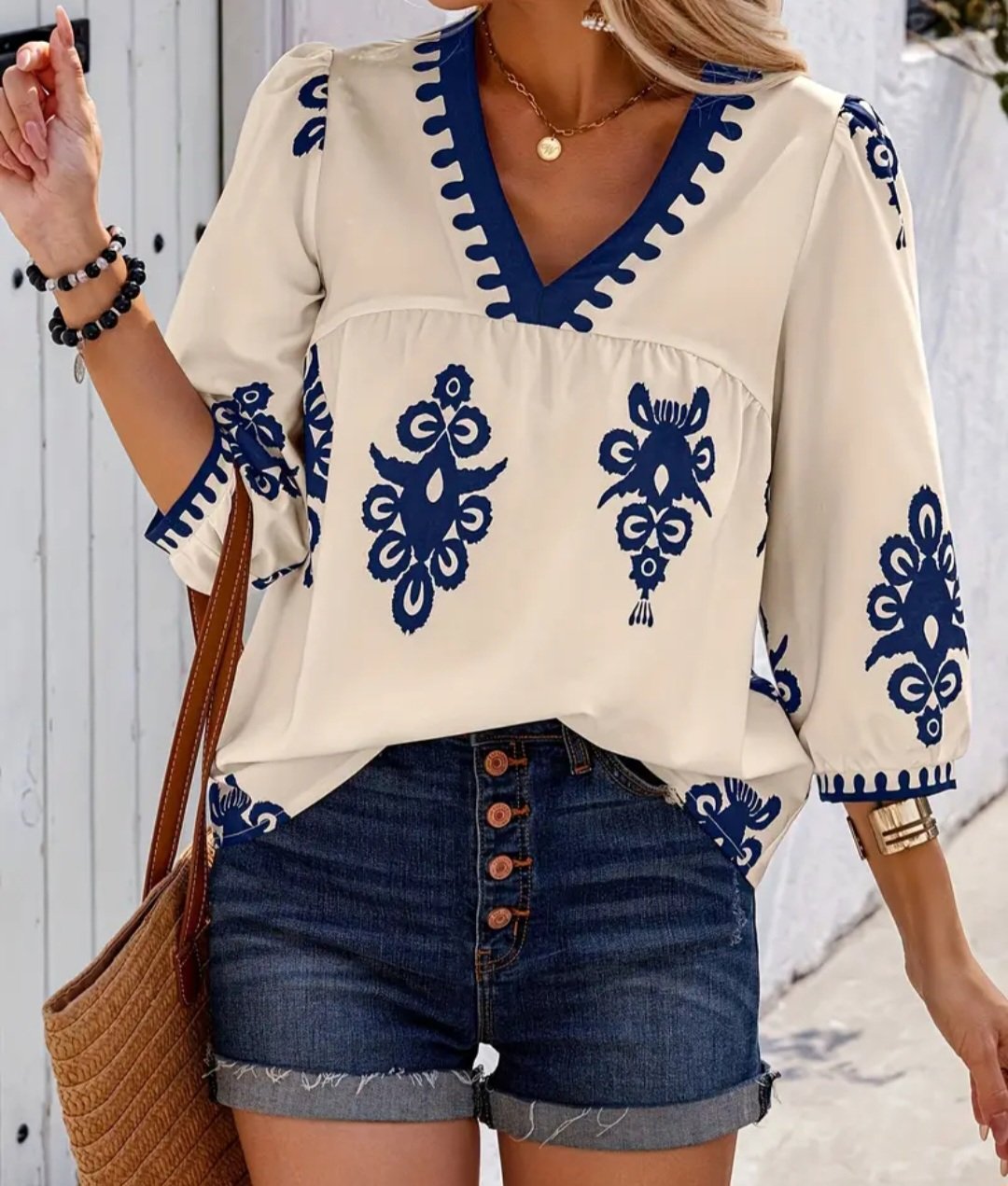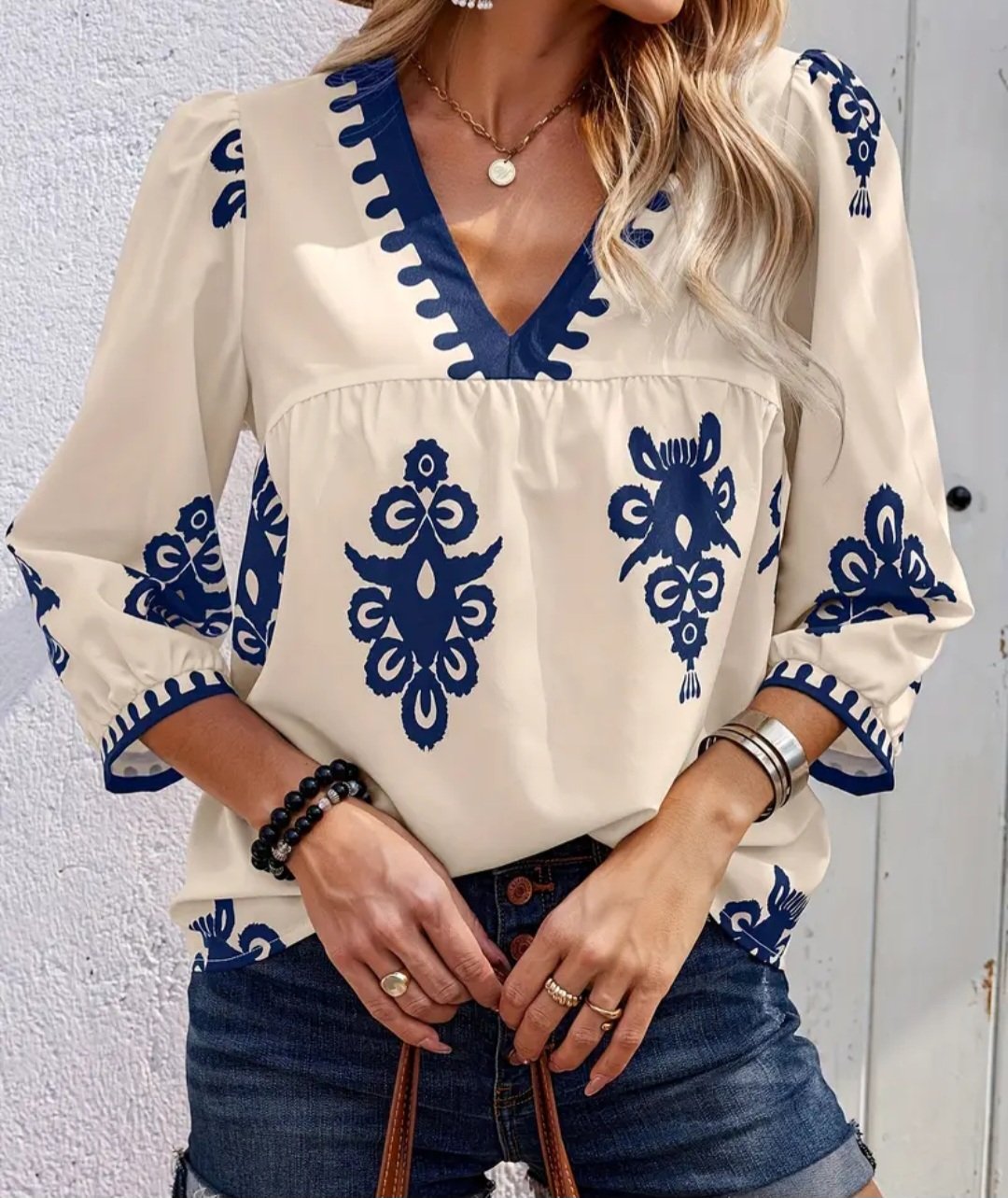dámska biela tunika s modrým vzorovaním