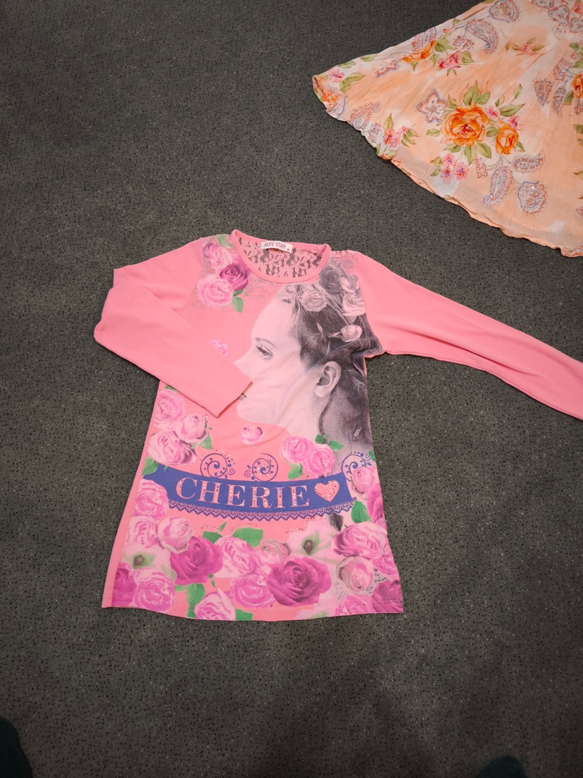 Nosené zachovalé Veľ. 134-140 95% bavlna, 5% elastan Rukáv od ramena 47 cm Šírka 34 cm Dĺžka 51 cm Cena bez pošty za obe spolu