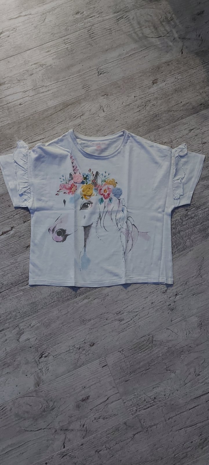 Predám dievčenské tričko s motívom jednorožca. Dĺžka chrbta je 47cm.