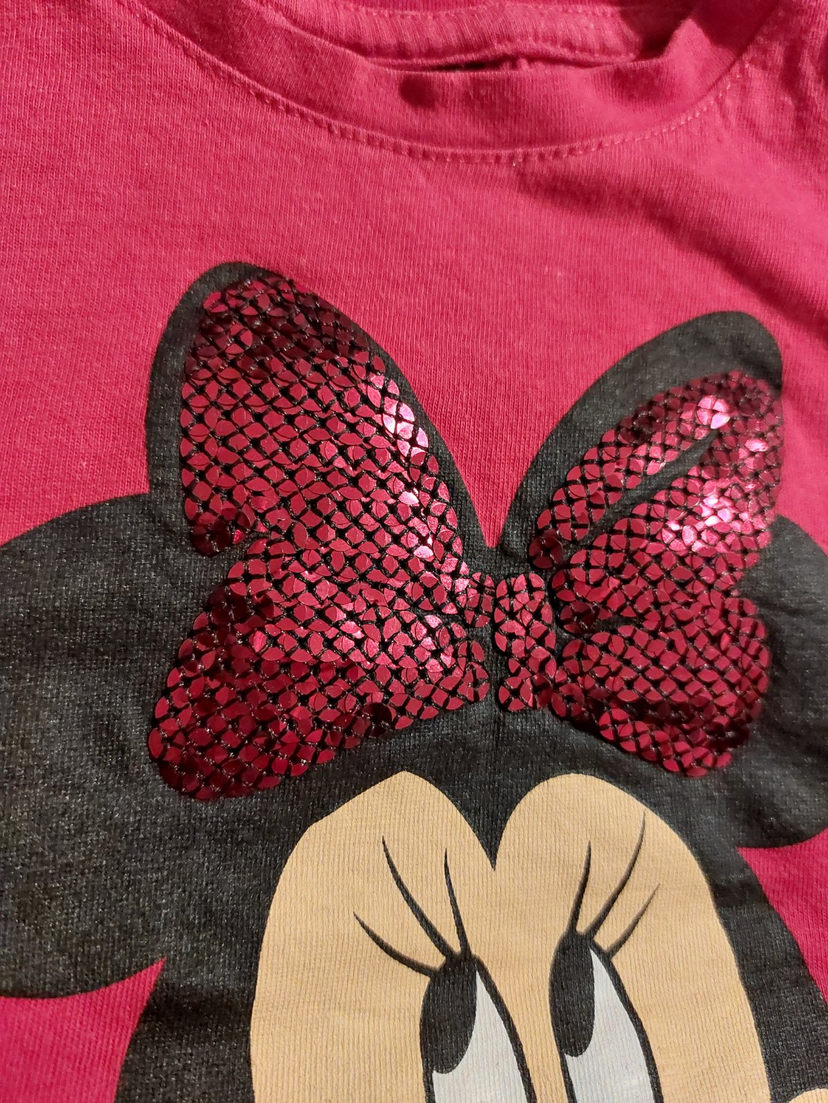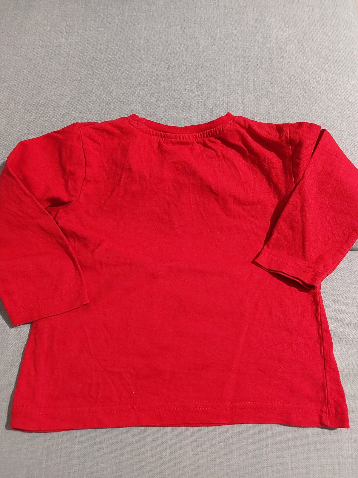 Klasické cervene, na foto ide do oranžova, tricko s trblietkami. Velkost by mala byť 86. Rukav 28, od krku 35cm.