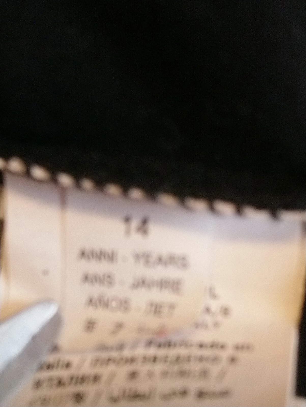 uvádzaná veľkosť na štítku 14,