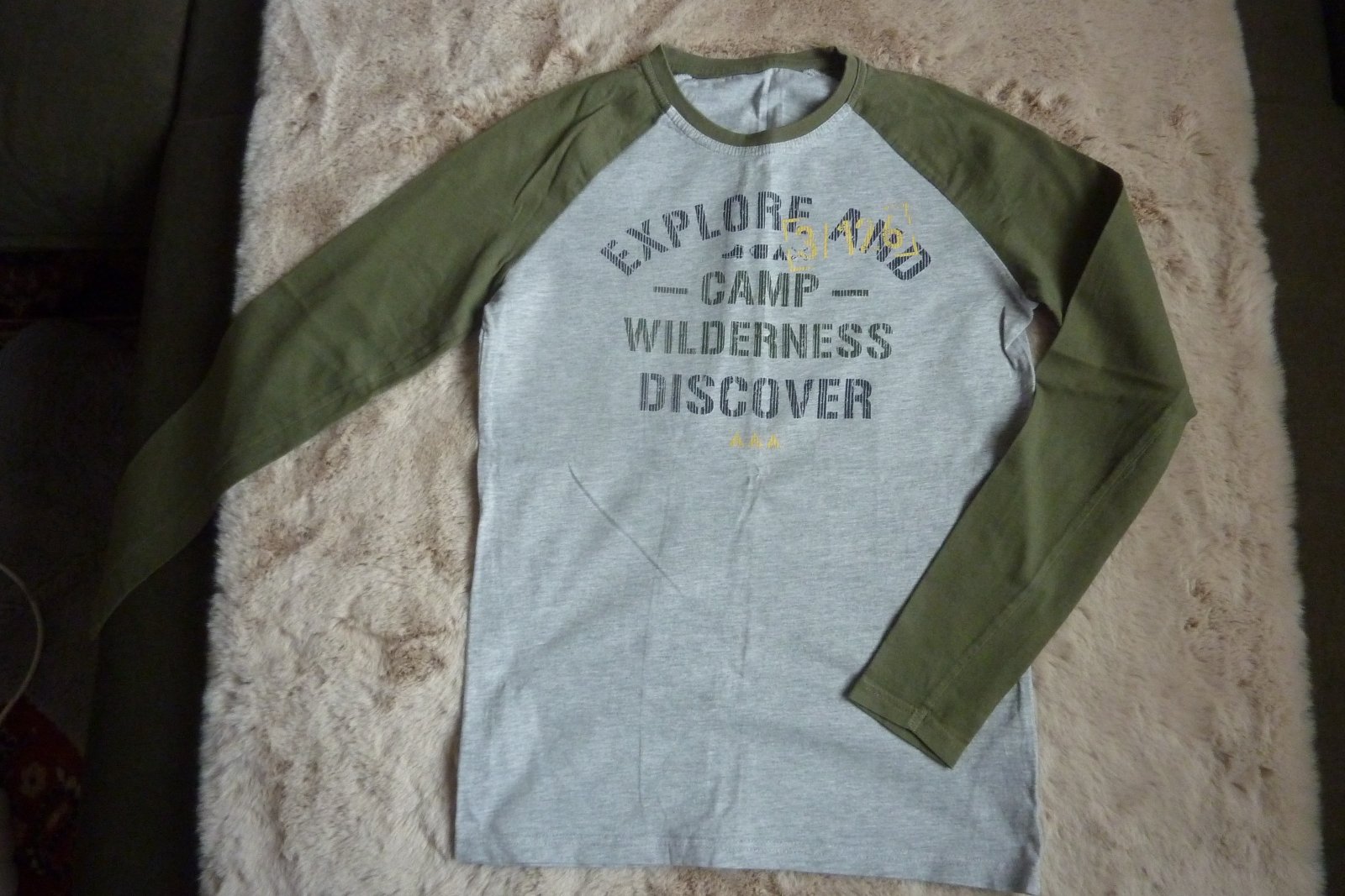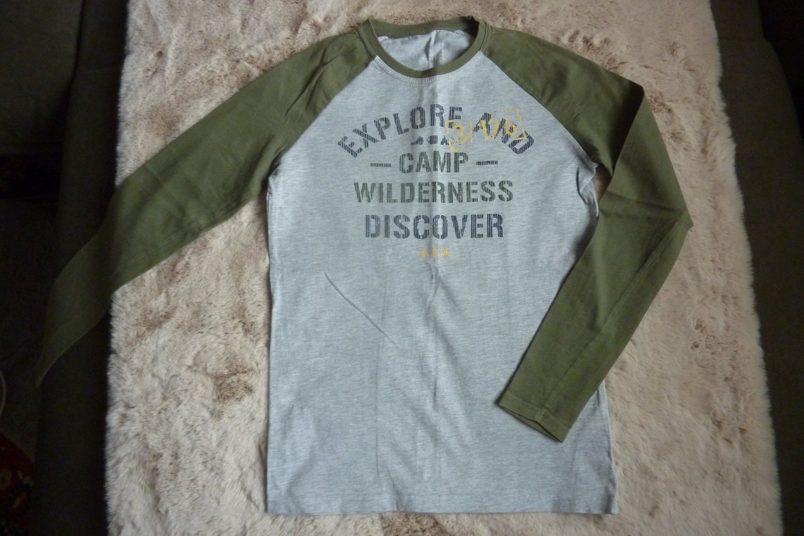 Tričko s dlhým ruk., 100% bavlna, šedo-tmavozelené, bez fľakov, bez dierok, v.158/164, top stav. Hrubšia bavlna, teplé.
